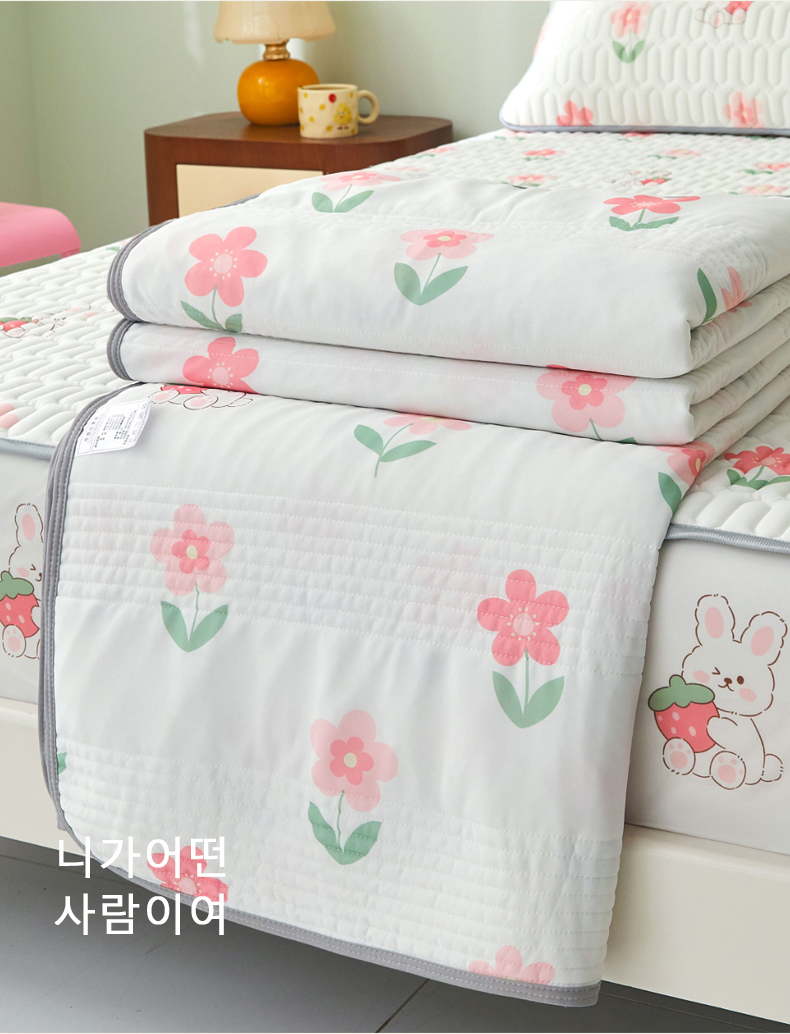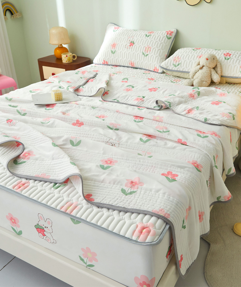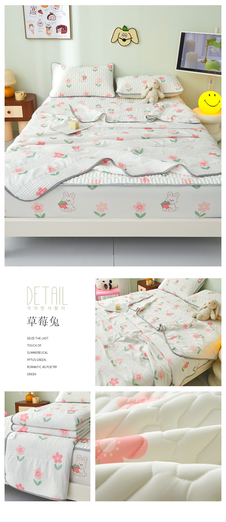 商品名称:LIFE.丽芙 2024年新品0.4乳胶凉席加厚床笠款三件套+凉感丝夏被可组合四件套-图片一 草莓兔