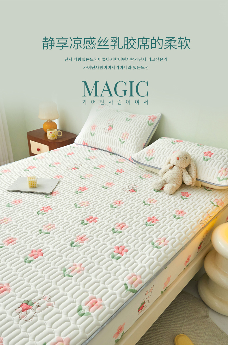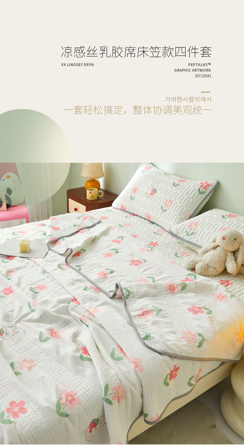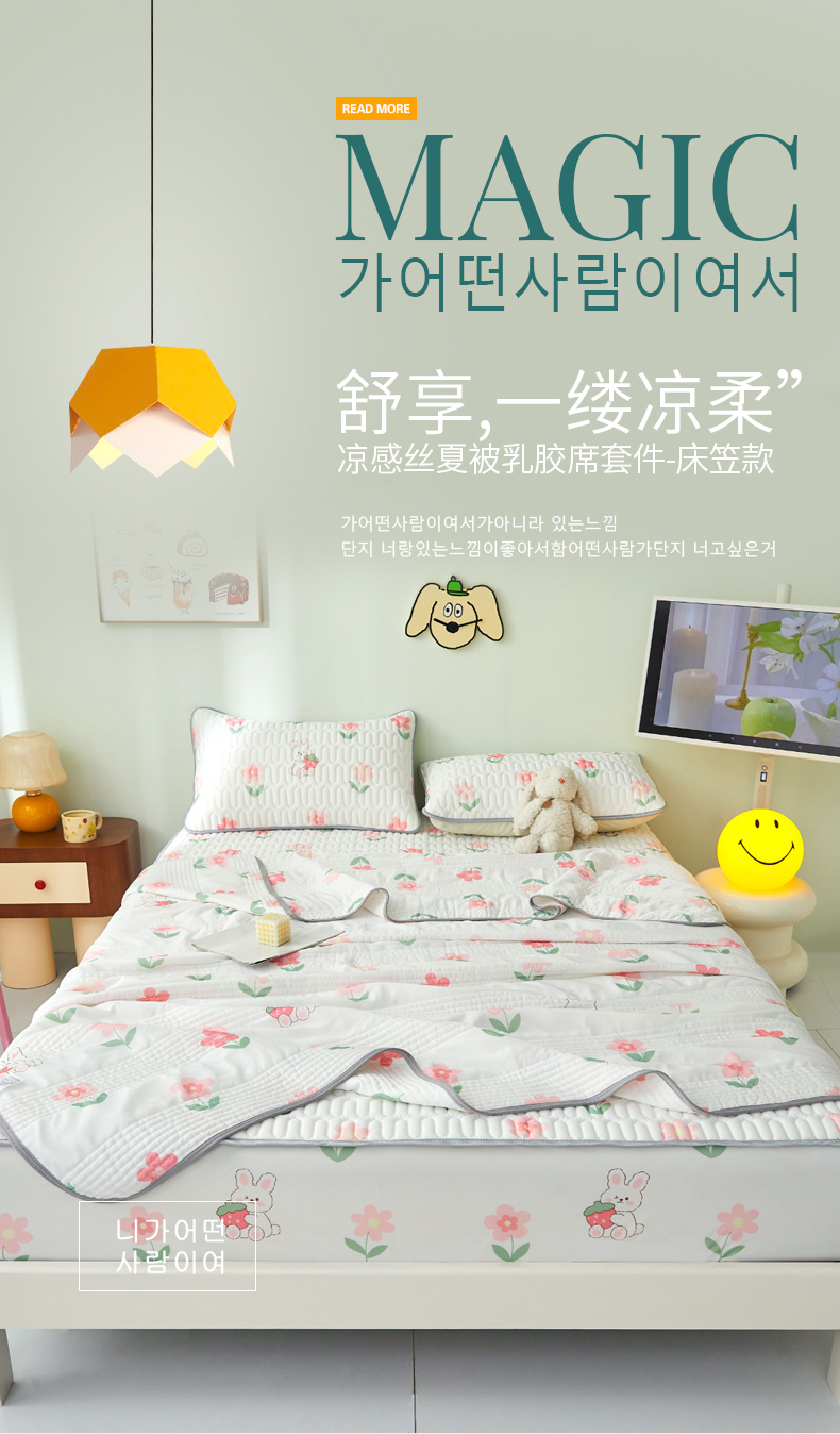 LIFE.丽芙 2024年新品0.4乳胶凉席加厚床笠款三件套+凉感丝夏被可组合四件套-图片一 草莓兔