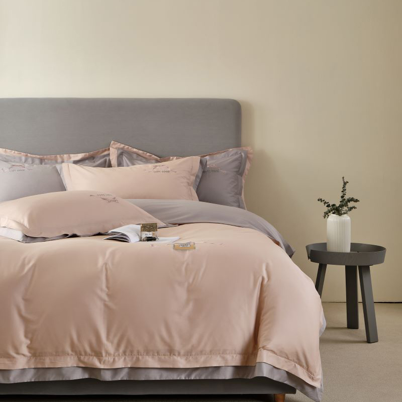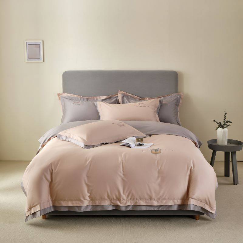 (总)LADYCOCO可可家居 2025新款三开口贡缎夹棉四件套 优易套/U易套 三开口被套,唯一专利发明单位,全球专利布局(控价不低于410元),浅粉+浅灰,浅紫+浅灰,浅灰+卡其
