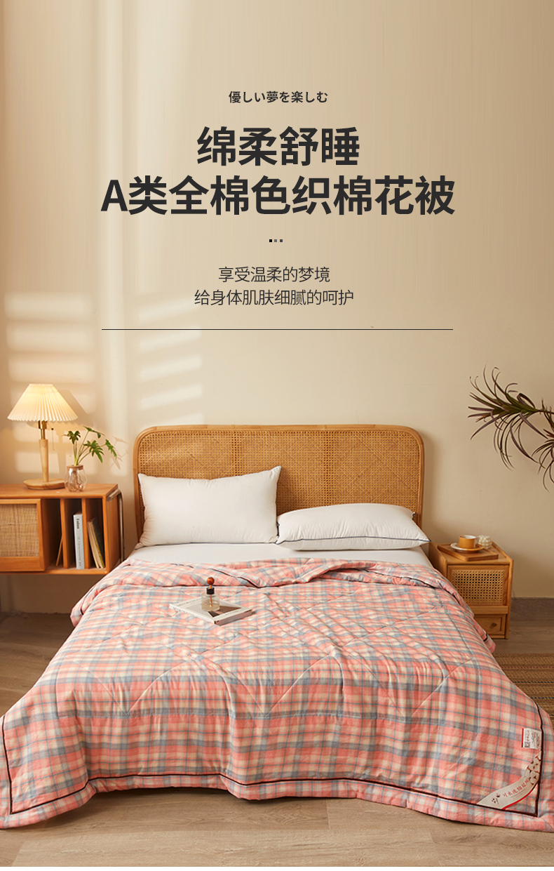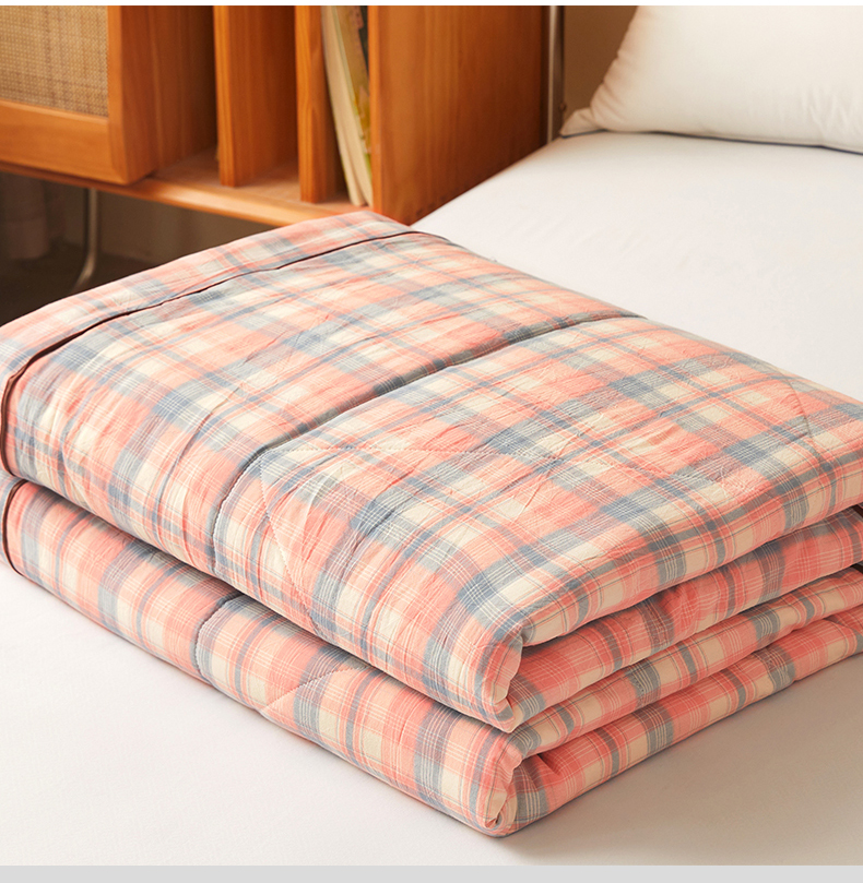 21度C 2024新款A类全棉色织水洗棉棉花夏被 七分格粉