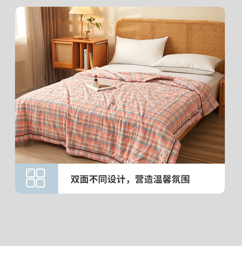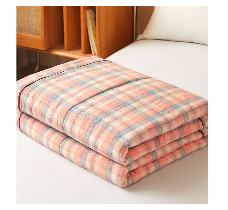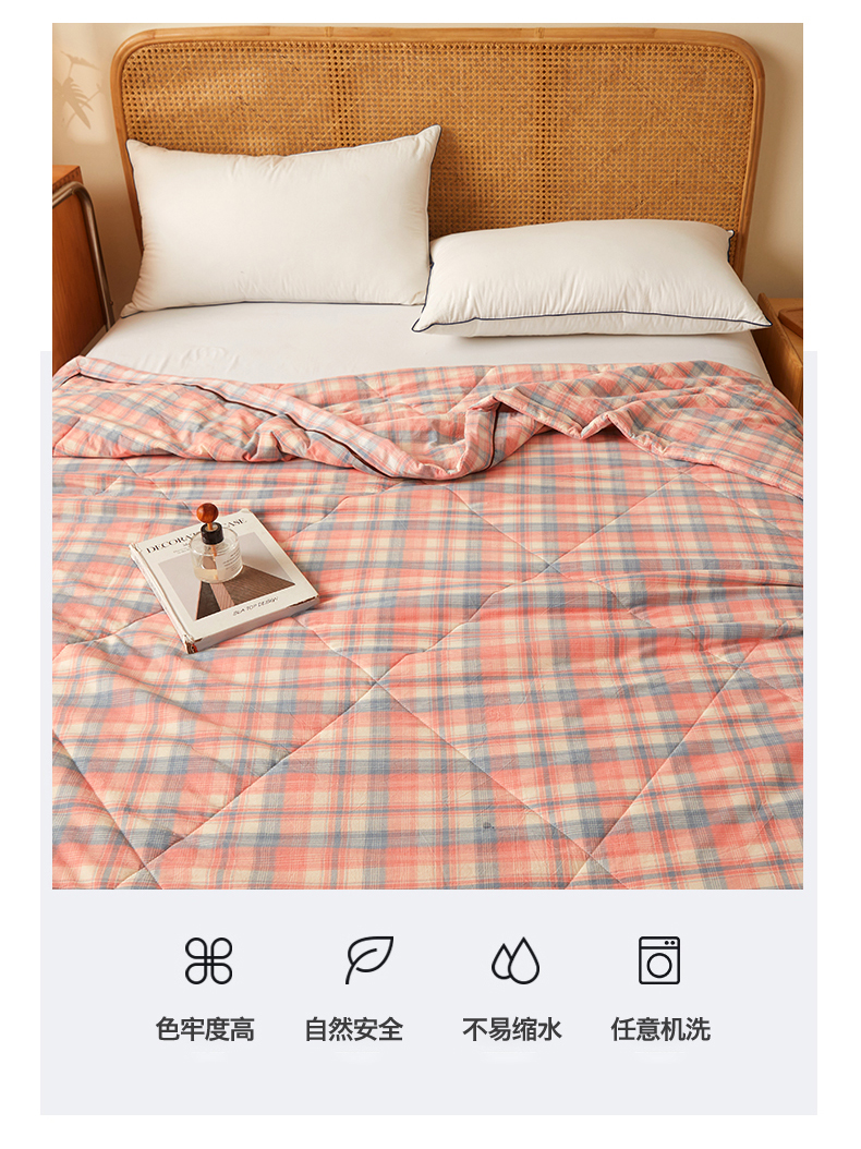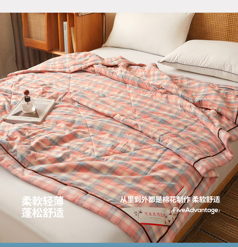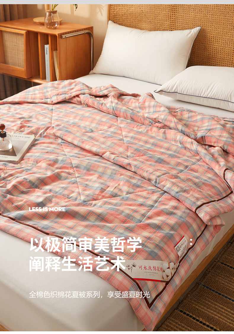 商品名称:21度C 2024新款A类全棉色织水洗棉棉花夏被 七分格粉