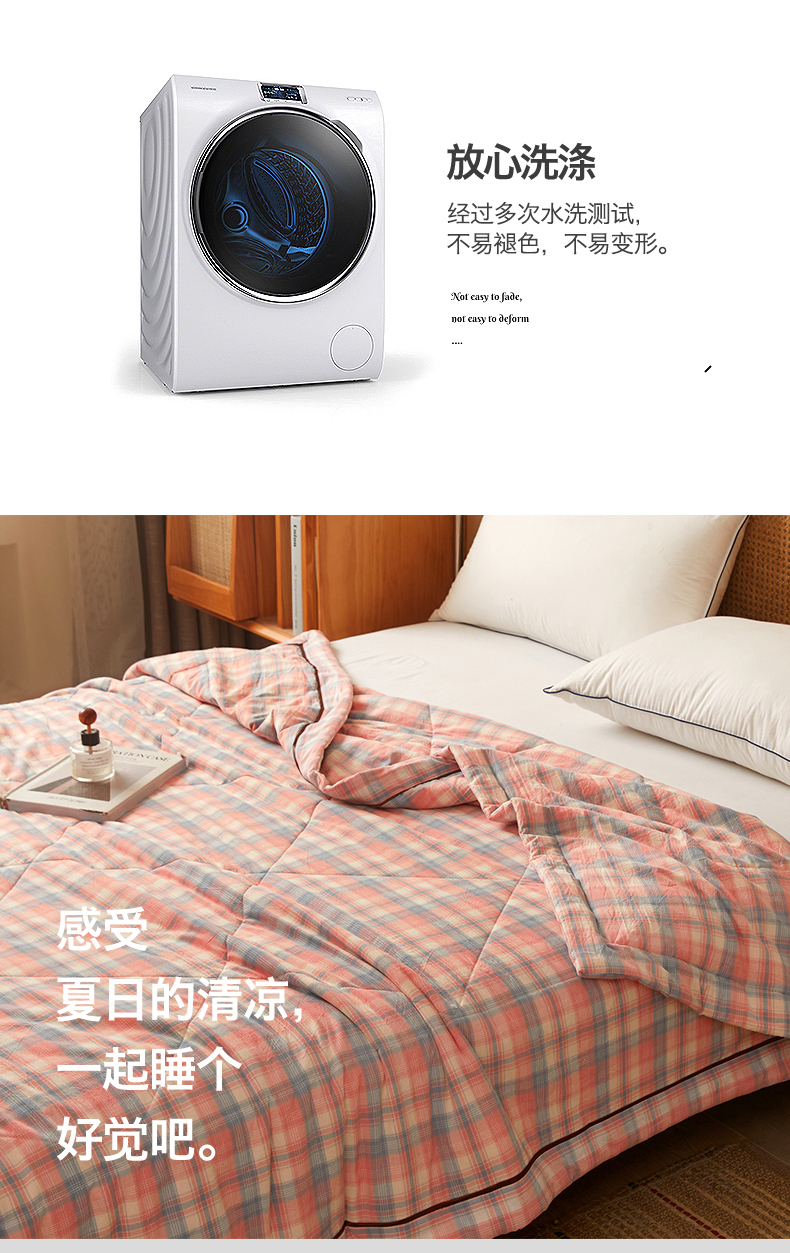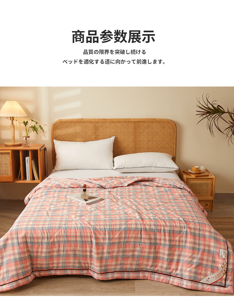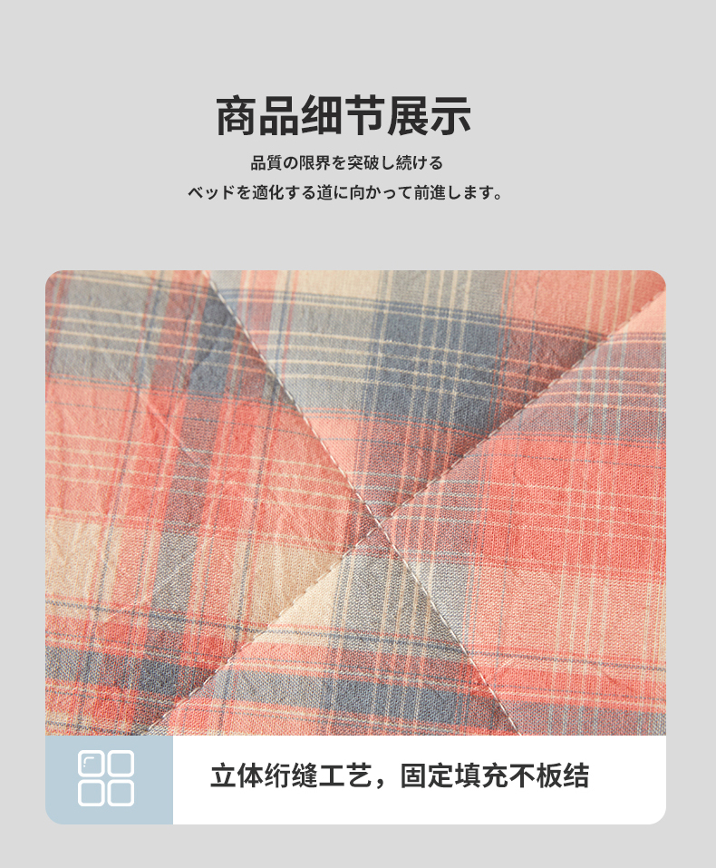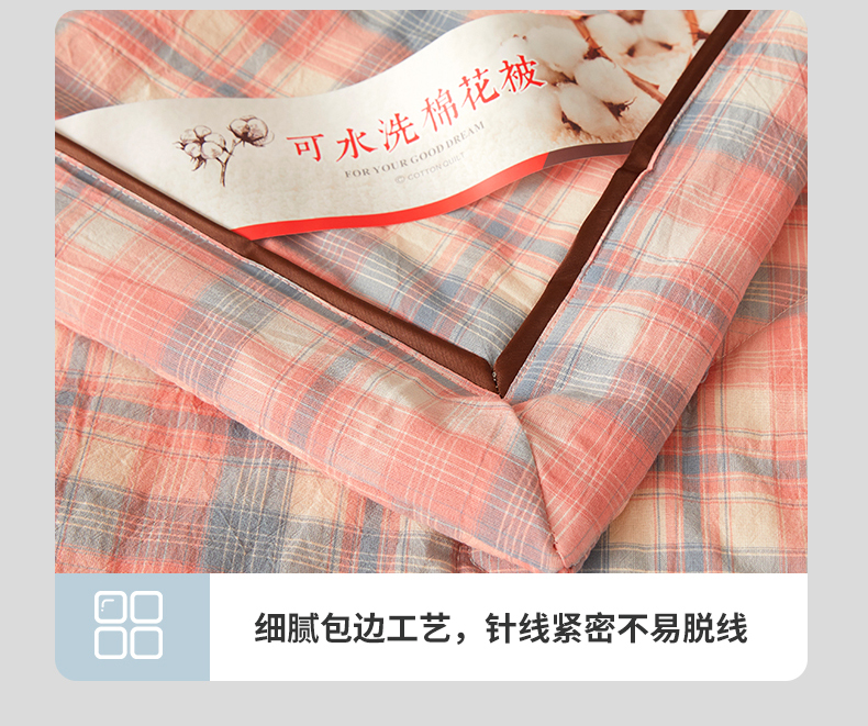商品名称:21度C 2024新款A类全棉色织水洗棉棉花夏被 七分格粉