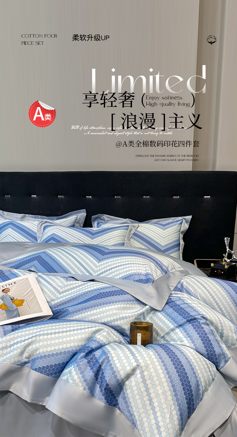 当前位置: 91家纺网 > 商品网购 > 床品套件 > 四件套 > 全棉活性四件套 > 2024新款直播爆款莫奈活性数码印花四件套 莫奈-星月蓝
