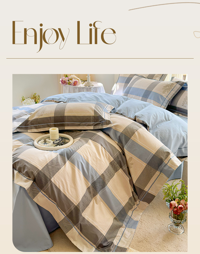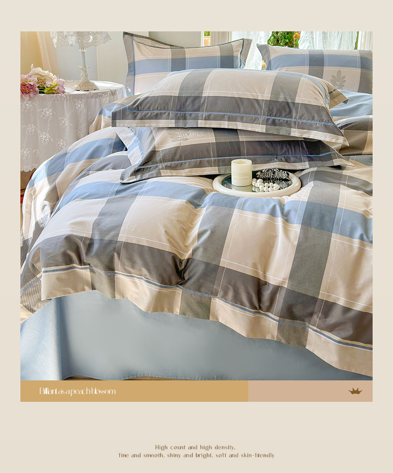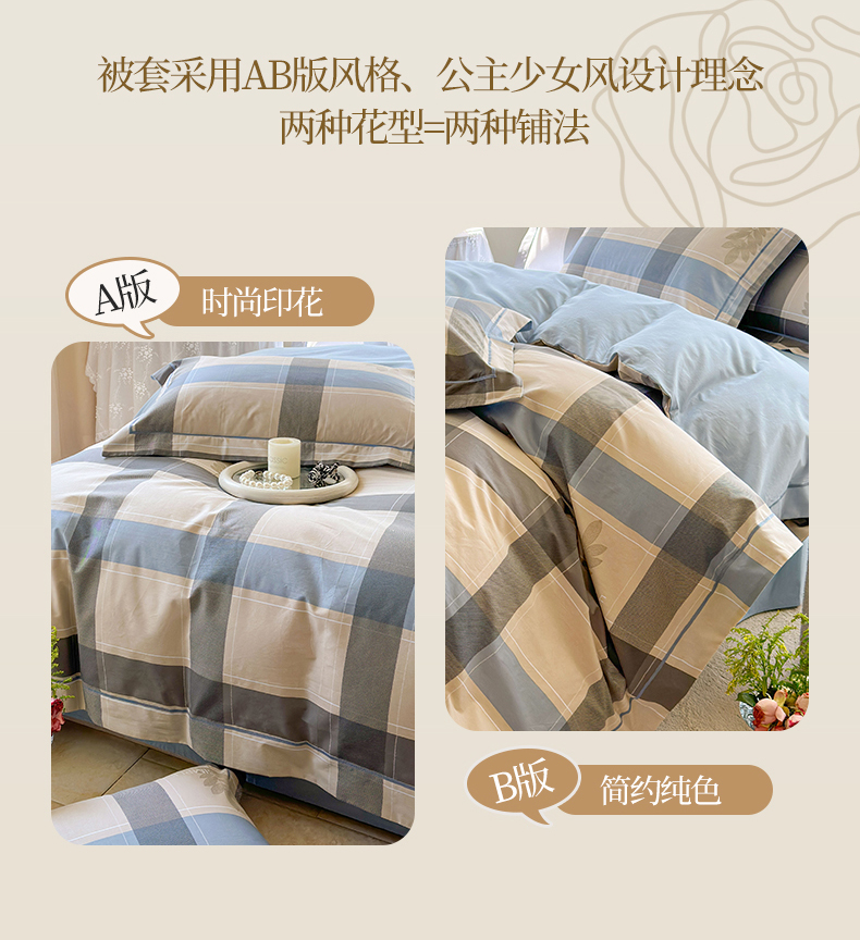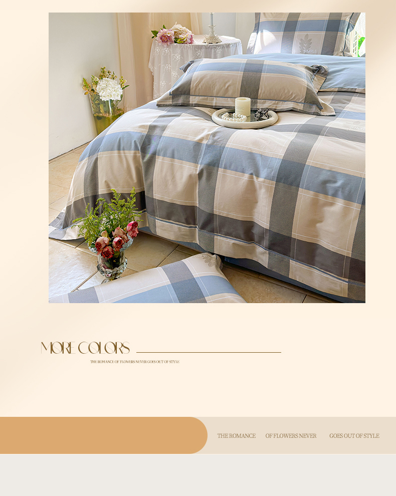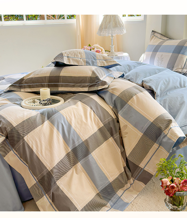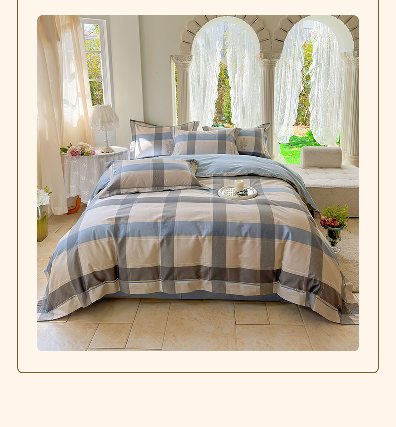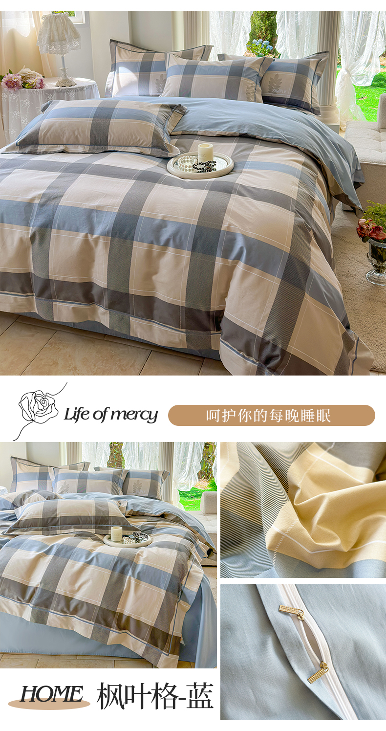 当前位置: 91家纺网 > 商品网购 > 床品套件 > 四件套 > 全棉普通四件套 > 7V 小清新大宽边100%纯棉法式四件套轻奢13376全棉喷气宽幅长绒棉被套床单床笠套件 枫叶格-蓝