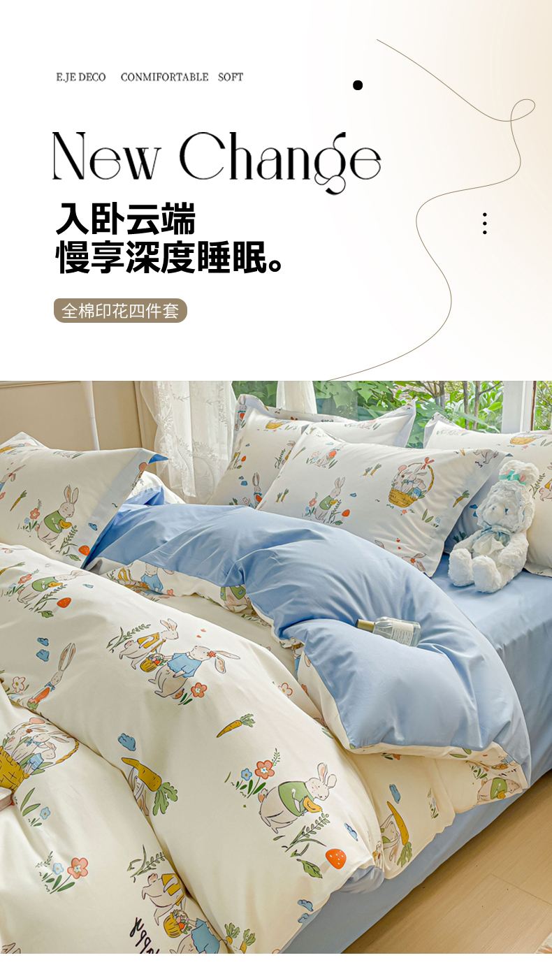 当前位置: 91家纺网 > 商品网购 > 床品套件 > 四件套 > 全棉普通四件套 > 金鑫汇家纺 2024新款全棉纯棉卡通印花四件套单品系列-四件套收获满满蓝色