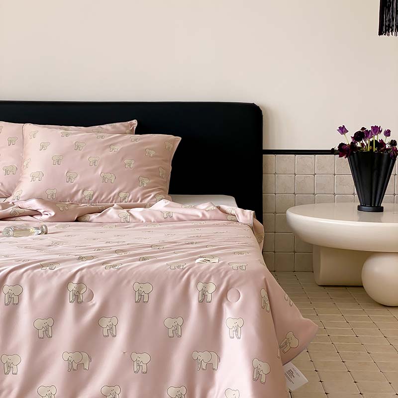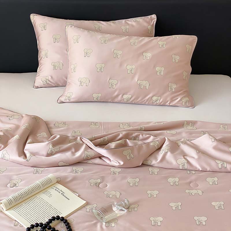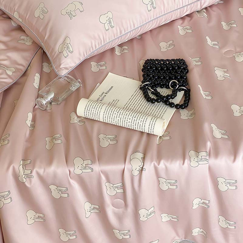 商品名称:汇庭 2024新款雅棉天丝可机洗夏被棚拍 多多象粉