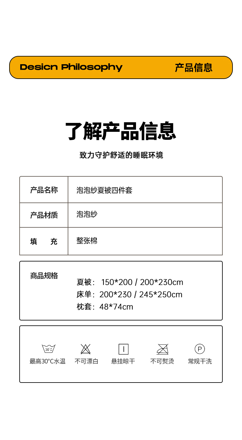 商品名称:满座家居 2025新款亲肤泡泡纱夏被四件套 柔白