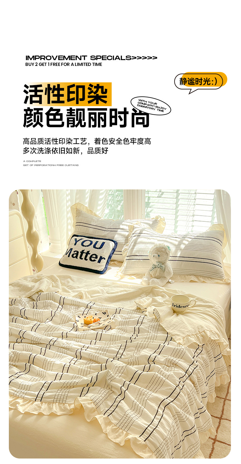 (总)满座家居 2025直播爆款 韩版复古提花公主格四件套 亲肤云朵棉水洗棉四件套,花漾-铂金灰,花漾-淡雅紫,花漾-奶昔黄,花漾-莫妮绿,花漾-月影蓝,花漾-知夏粉