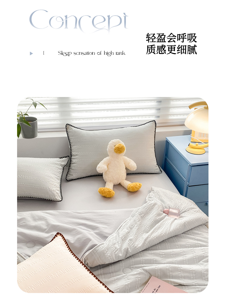 商品名称:羋多家纺 2024新款麻绳边纯色雨泡泡棉泡泡纱双层纱单夏被 雅士灰