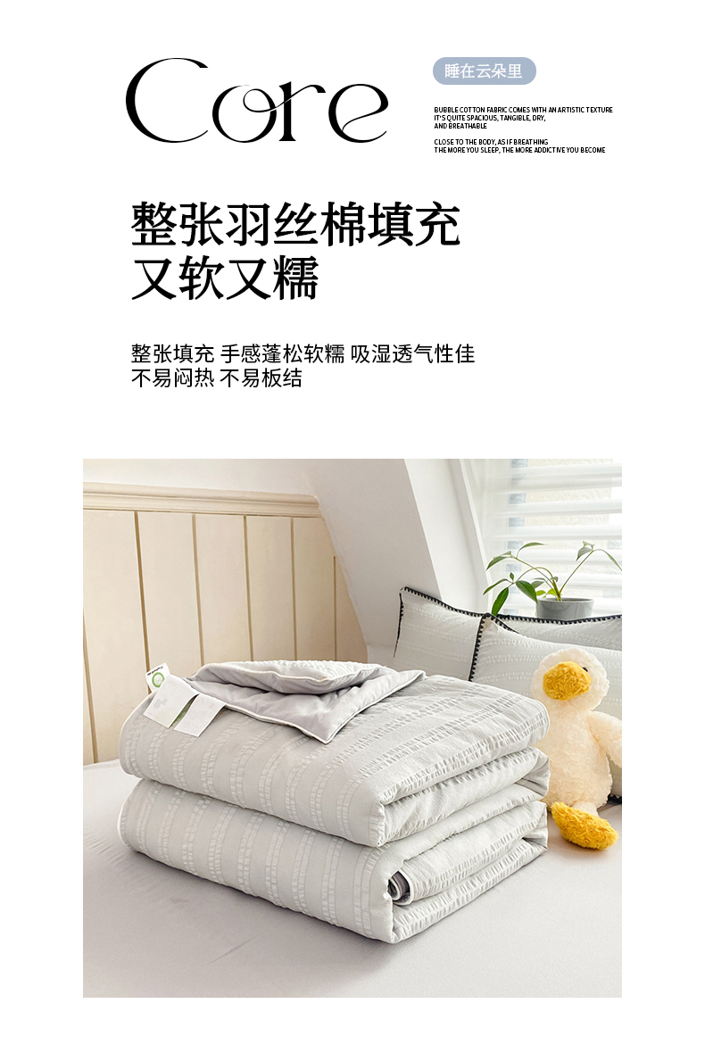 羋多家纺 2024新款麻绳边纯色雨泡泡棉泡泡纱双层纱单夏被 雅士灰
