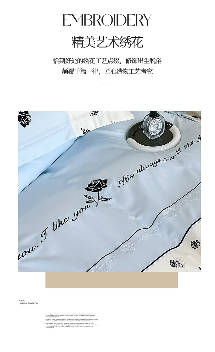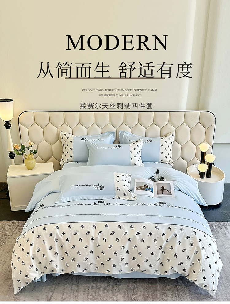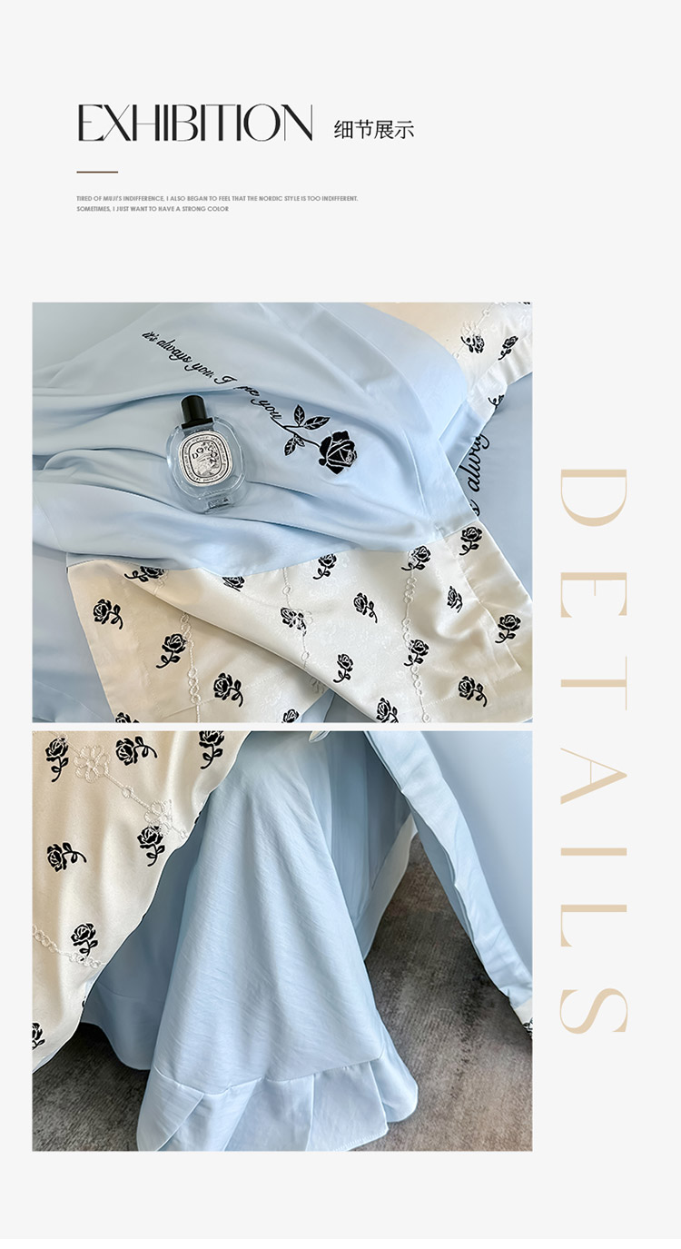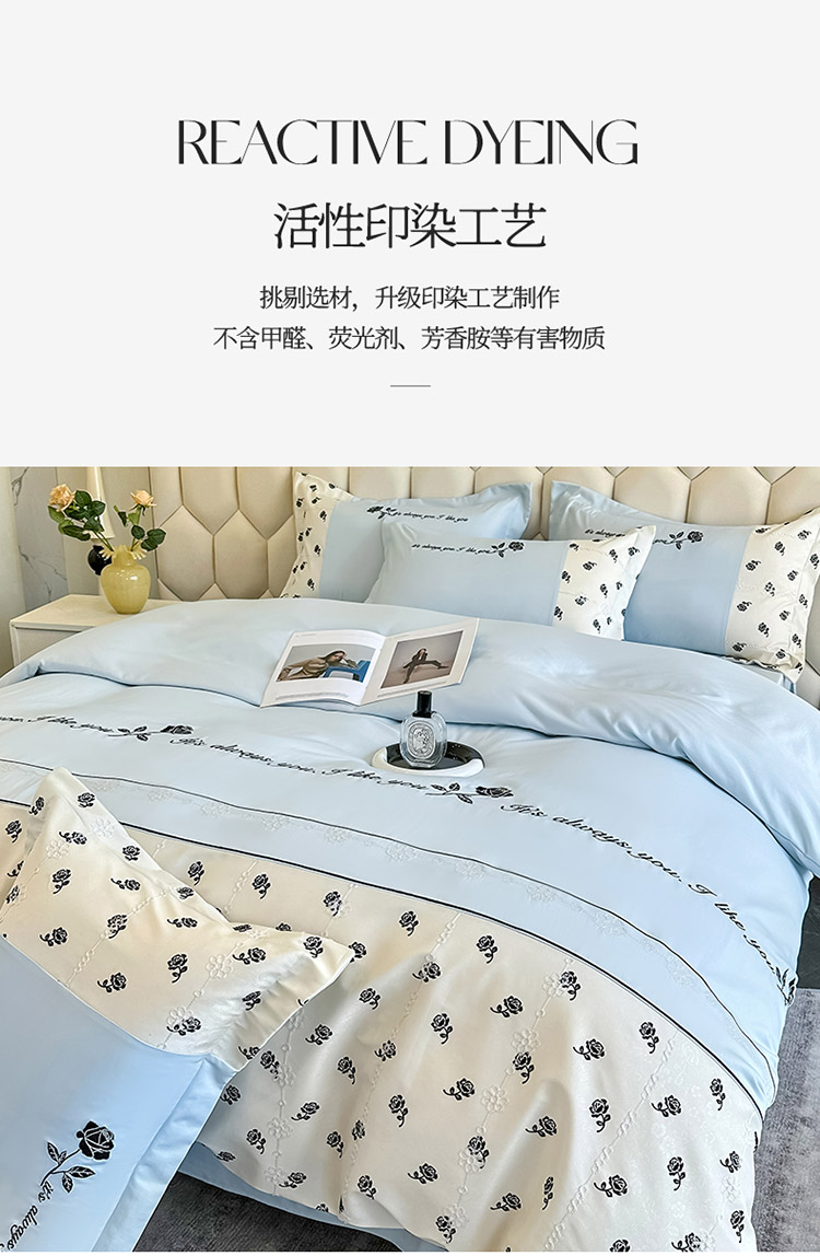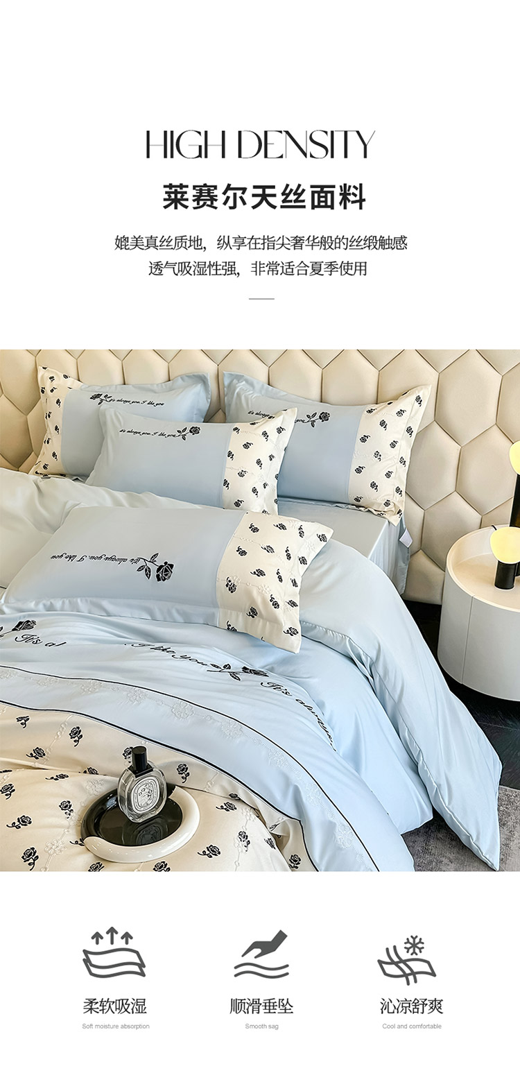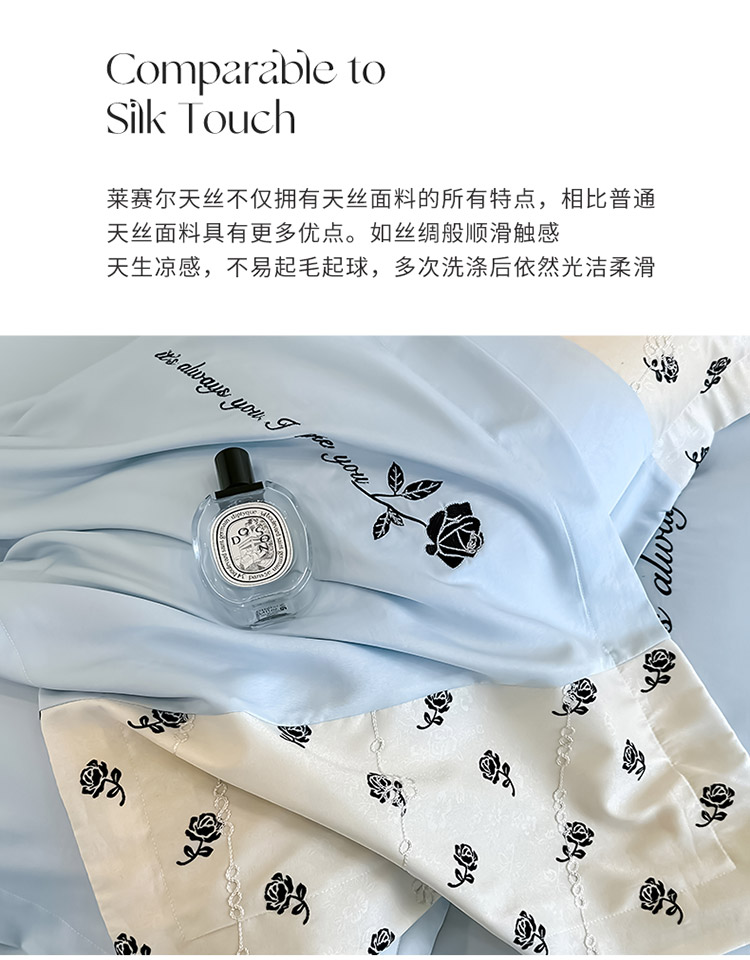 商品名称:梦舒羽 2025新款 莱赛尔天丝四件套-玫瑰之约 玫瑰之约-蓝