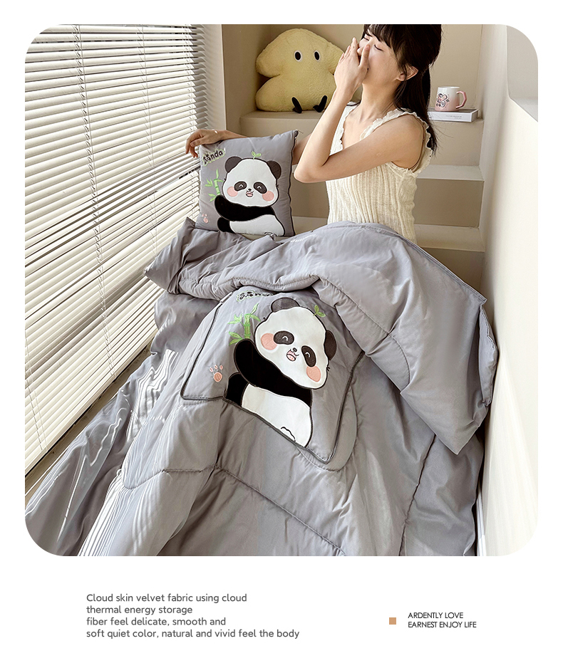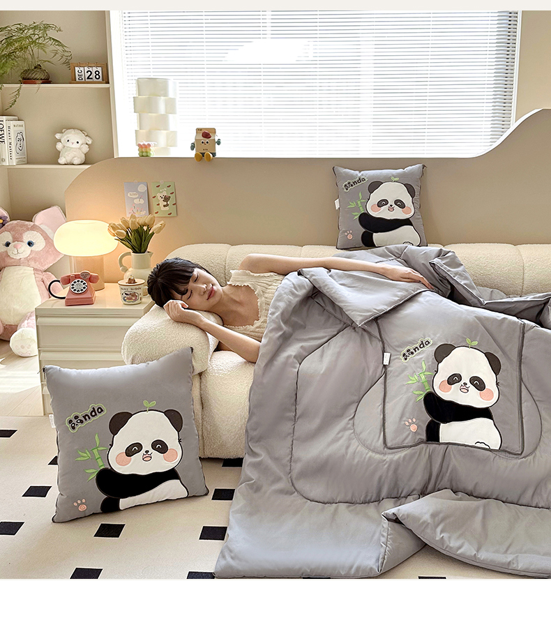 商品名称:(总)铭宣家居 2024新款贴布绣+重工刺绣多功能抱枕被系列 胖墩熊猫
