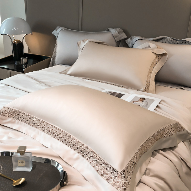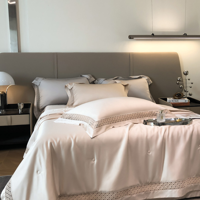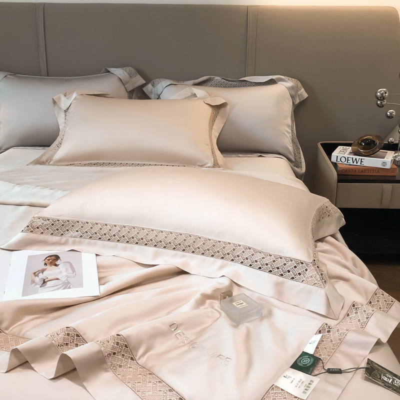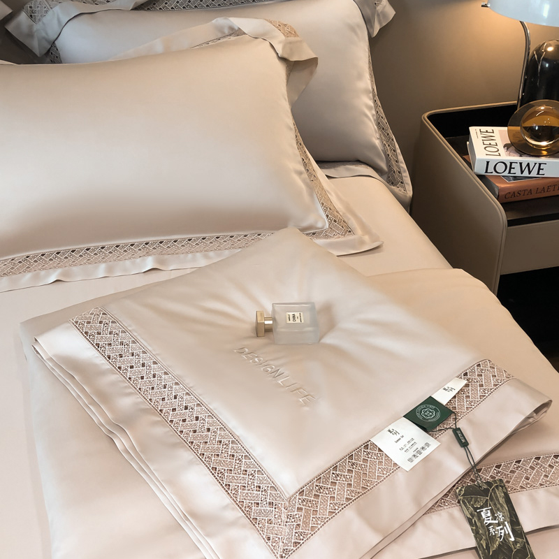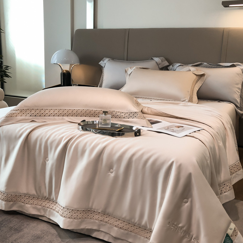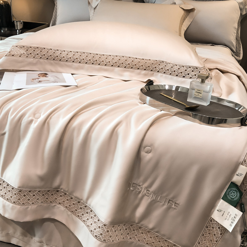 (总)佳汐蓝家纺 新款60支莱赛尔天丝镂空花边丝悦系列夏被四件套