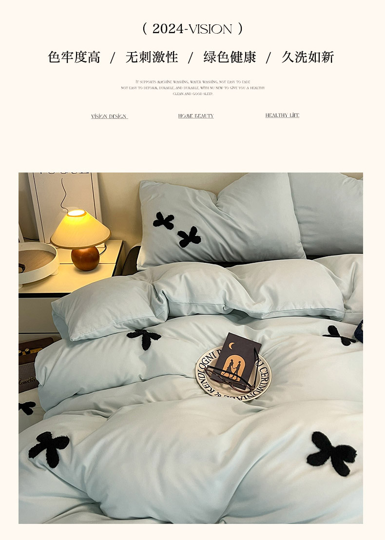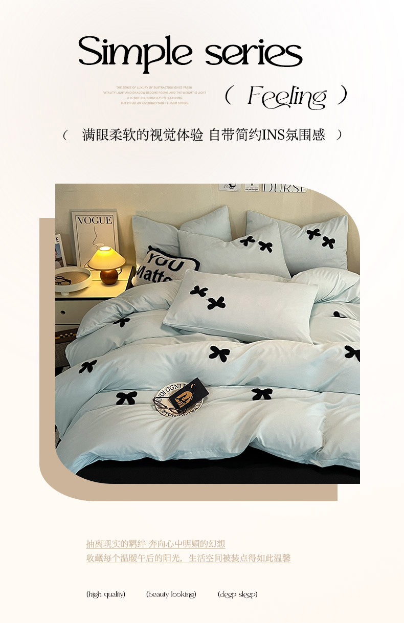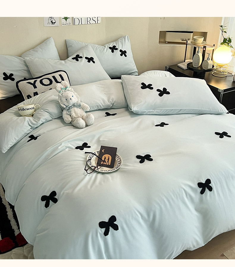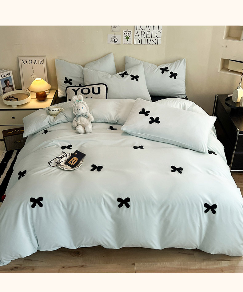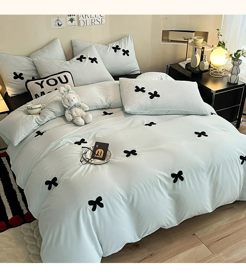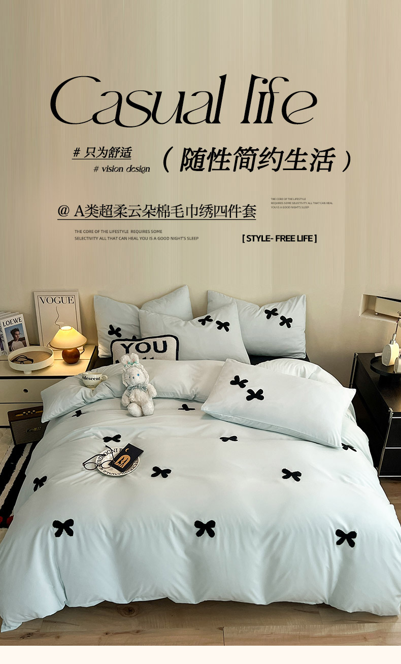 商品名称:2024新款超柔云朵棉毛巾绣四件套 蝴蝶结-薄荷蓝