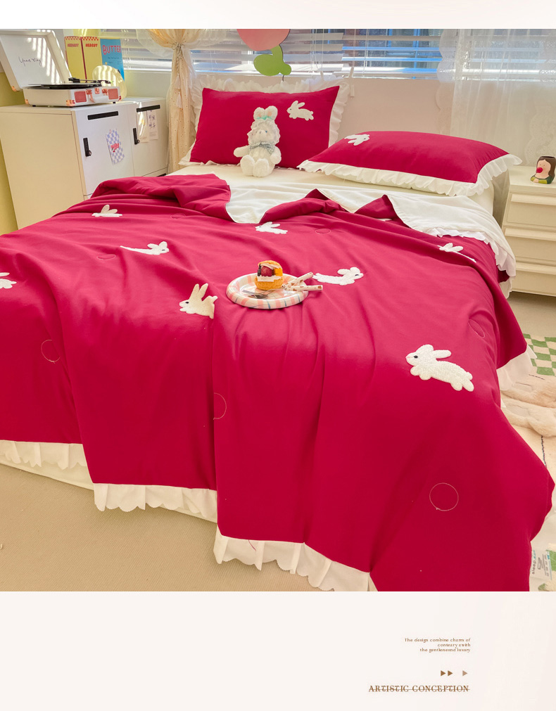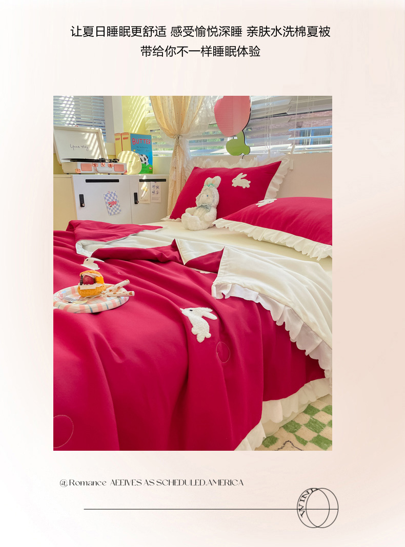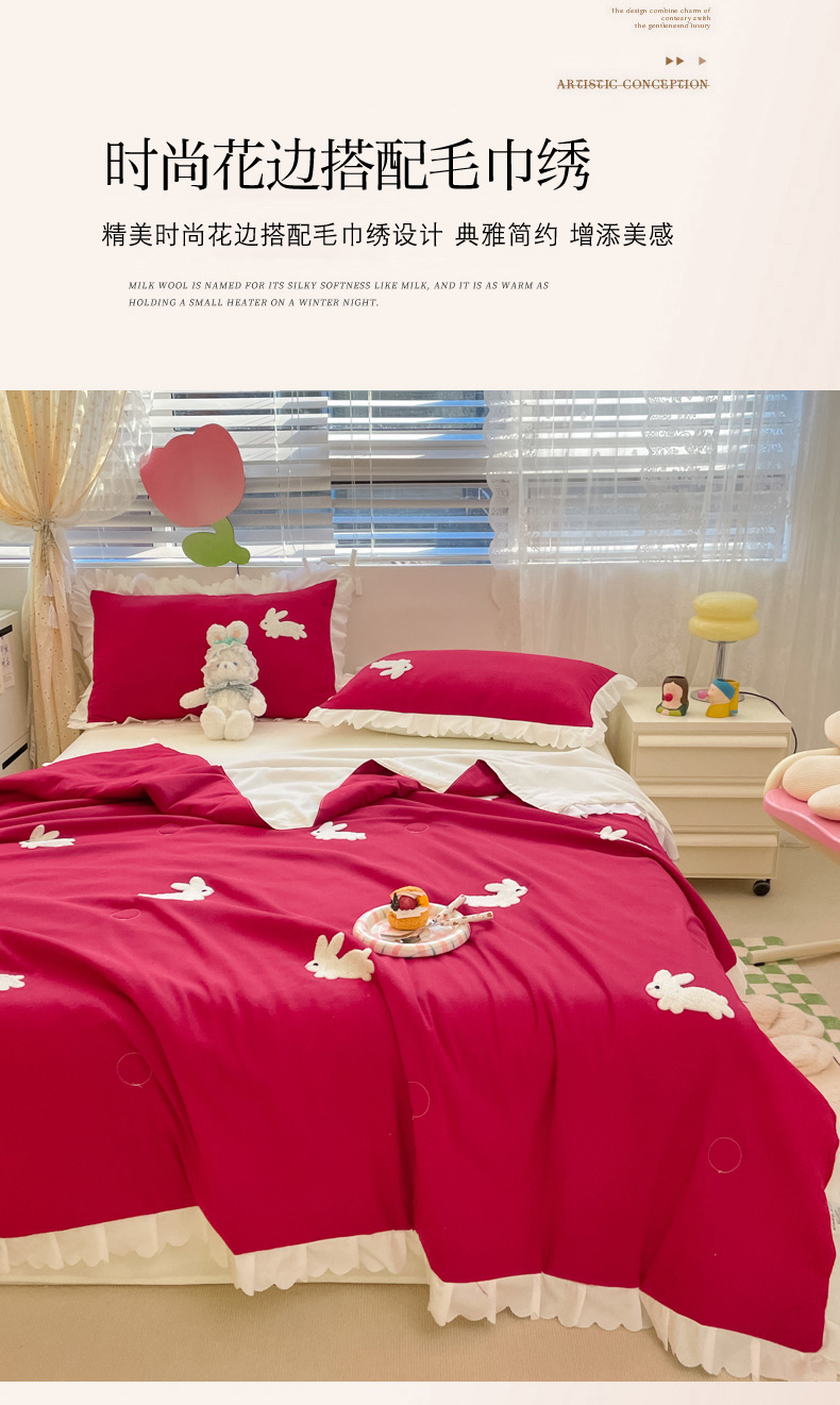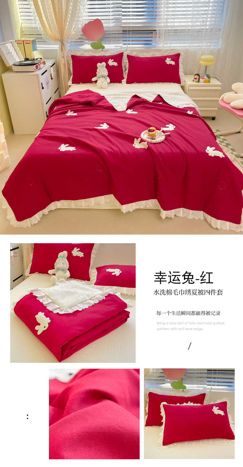 商品名称:沐慕 2024新款毛巾绣印花夏被四件套 幸运兔-红