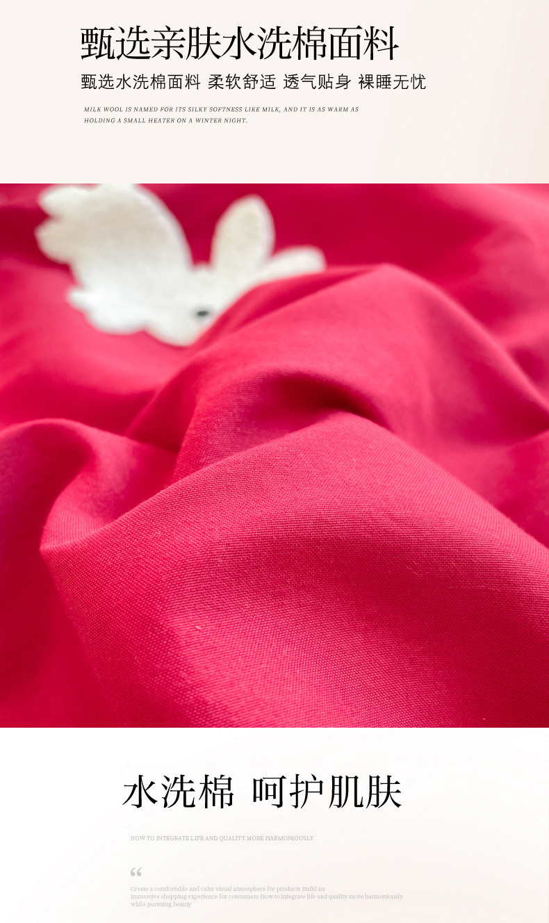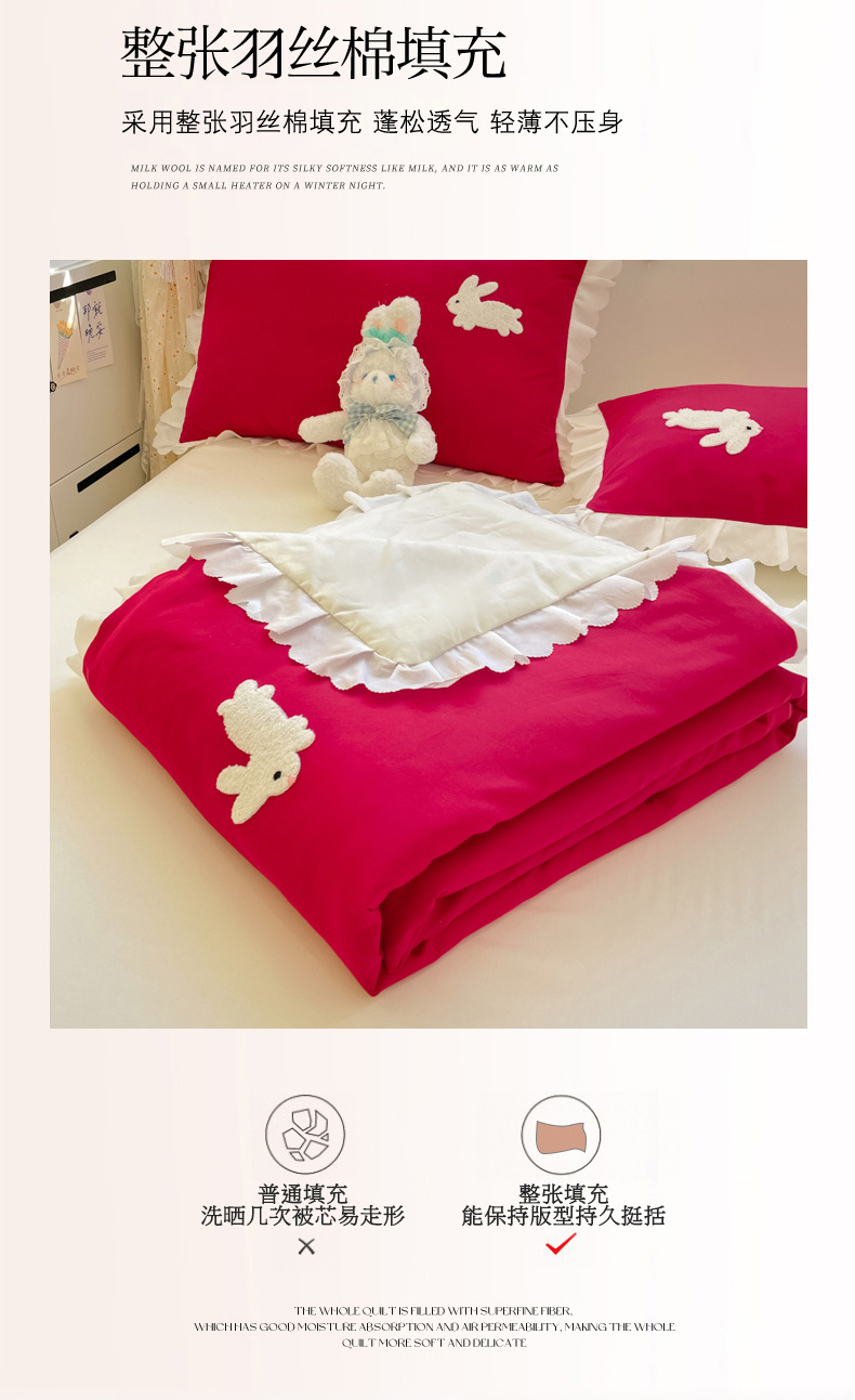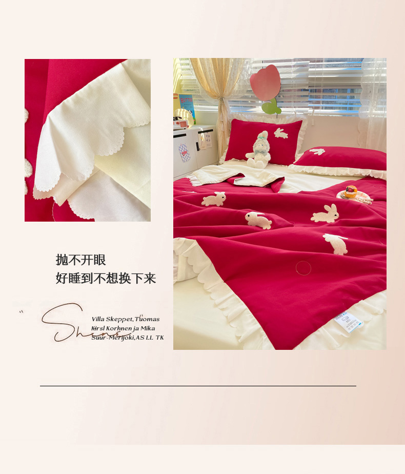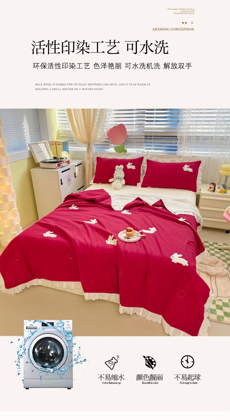 商品名称:沐慕 2024新款毛巾绣印花夏被四件套 幸运兔-红