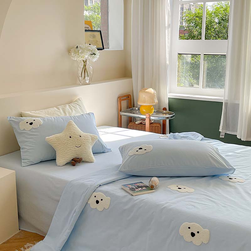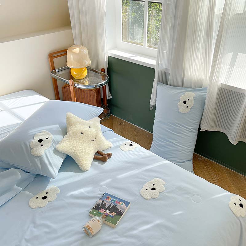 (总)柚子YOUTH 2025新款全棉纯棉工艺款13070贴布绣四件套,爱心小象,毛绒小狗,蘑菇女孩,星星法师