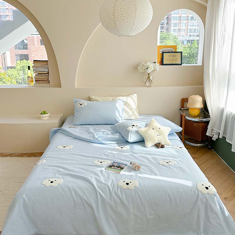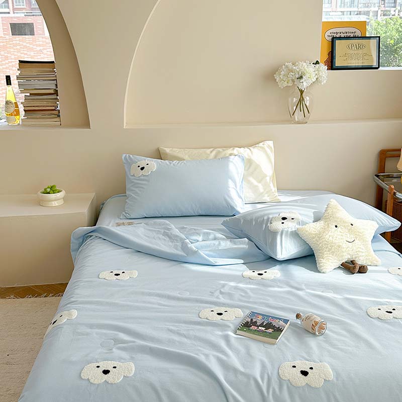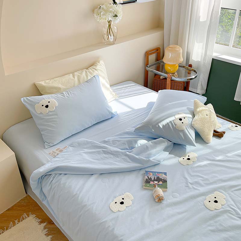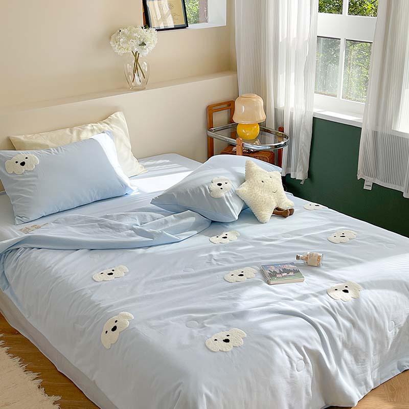 商品名称:柚子 2024新款全棉水洗新疆棉夏被四件套 小白狗