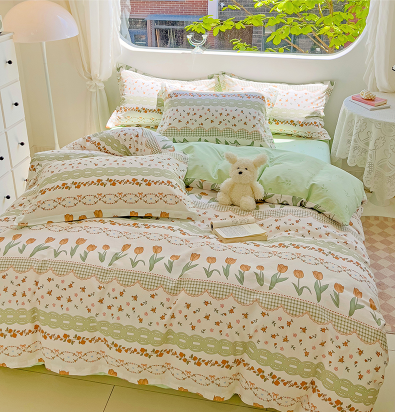 优选良品 2025新款直播爆款全棉-ins印花系列四件套纯棉三件套床单床笠 甜香花