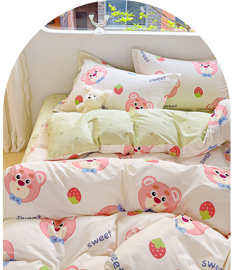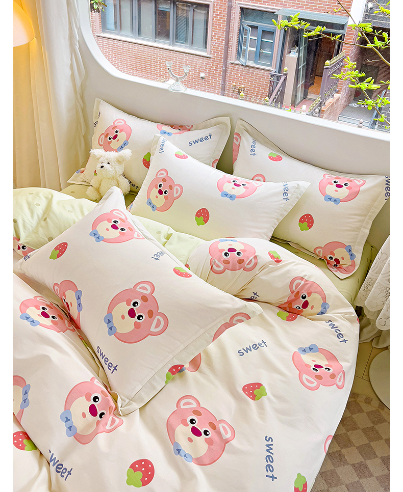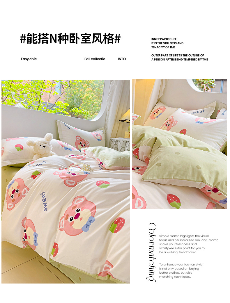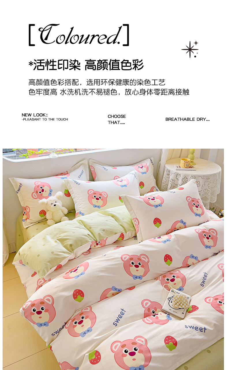 商品名称:优选良品 2025新款直播爆款全棉-ins印花系列四件套纯棉三件套床单床笠 萌小新
