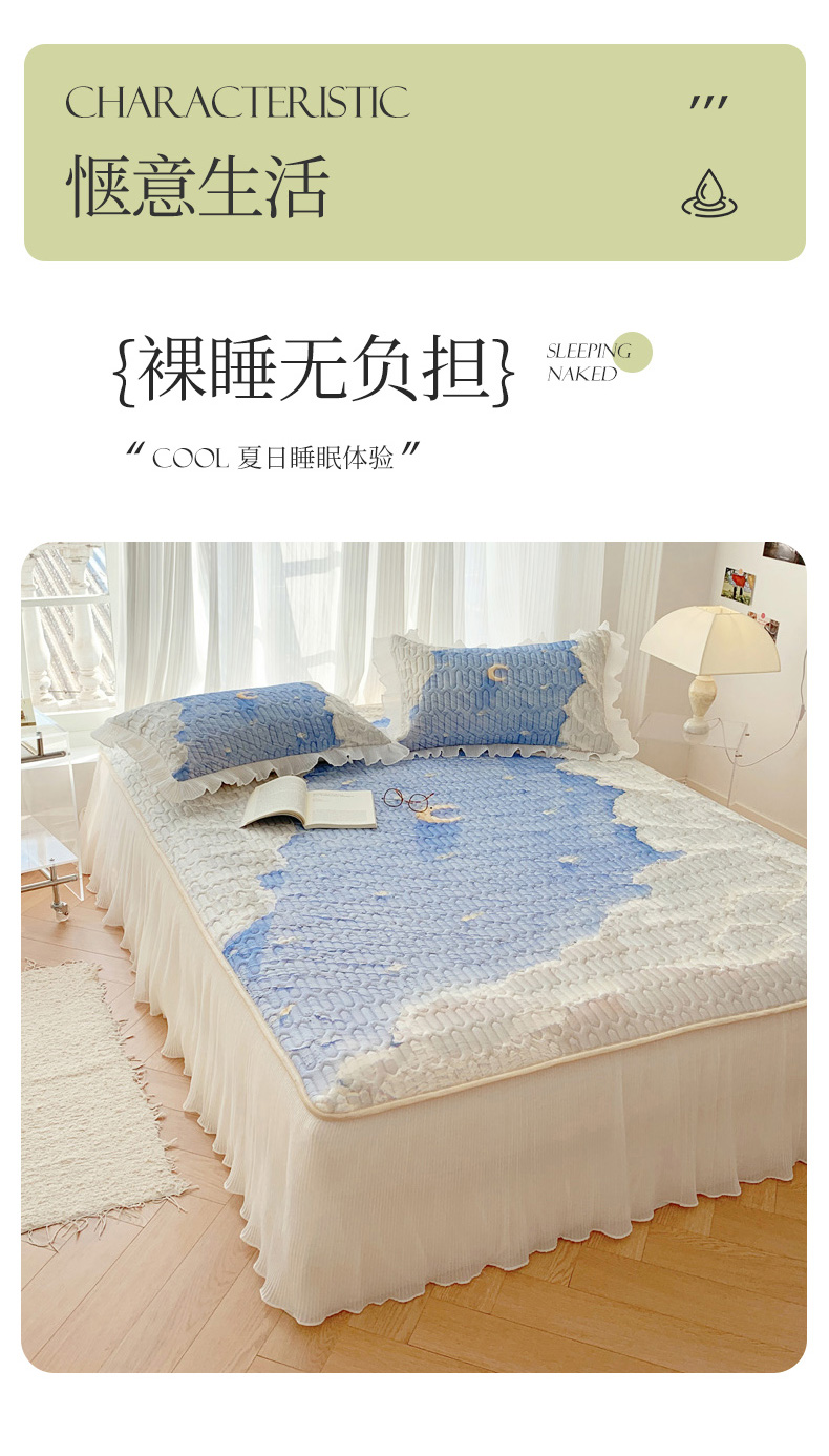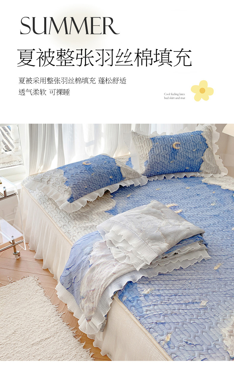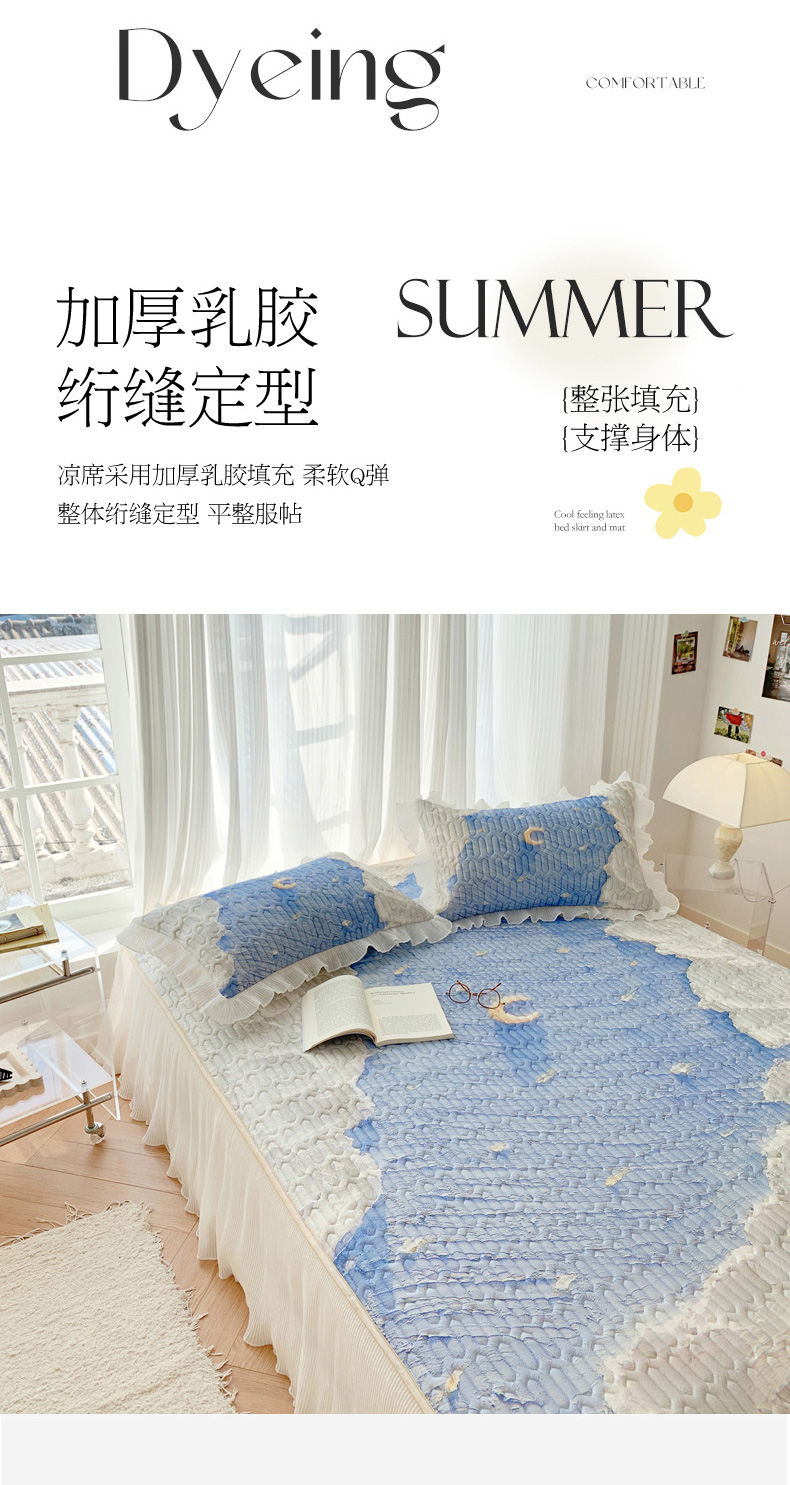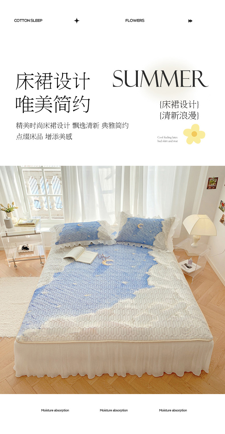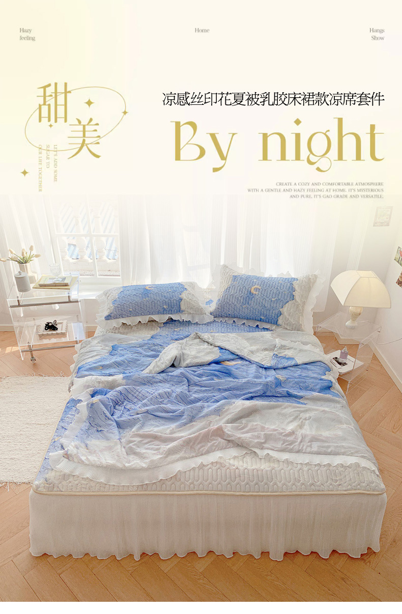慕澄家纺 2024新款大版印花床裙款乳胶凉席-凉席三件套 星辰
