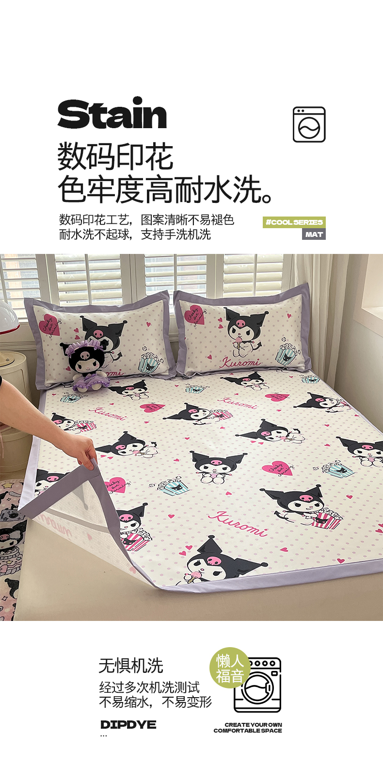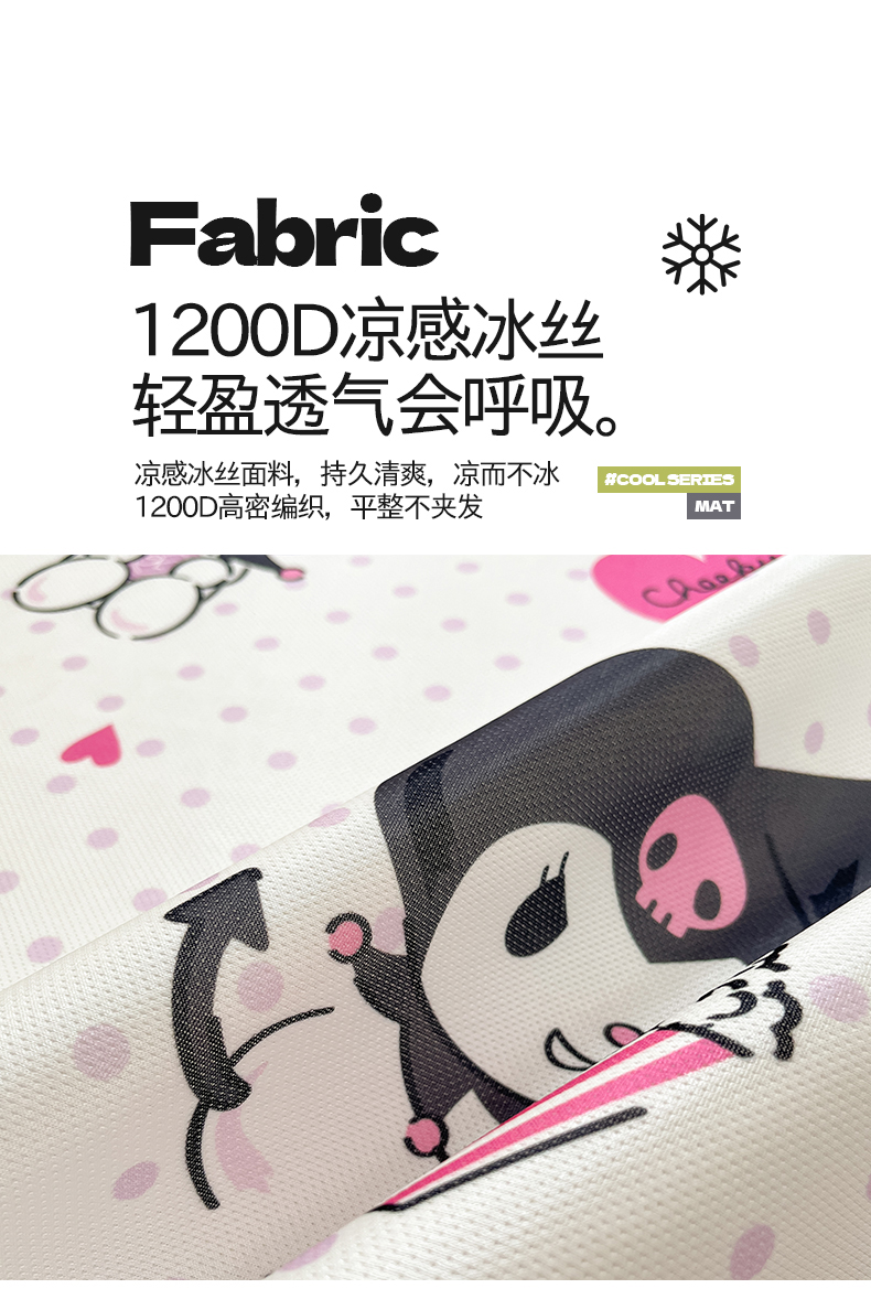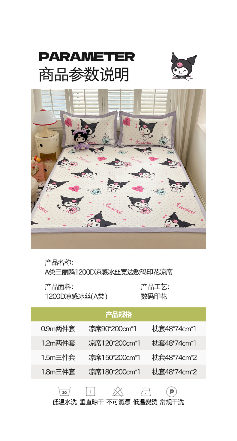 • 91家纺网 家纺一手货源 找家纺 金爱家 2024新款A类三丽鸥授权数码印花中分子1200D凉感冰丝宽边凉感软席 冰丝席-甜筒爱心库洛米