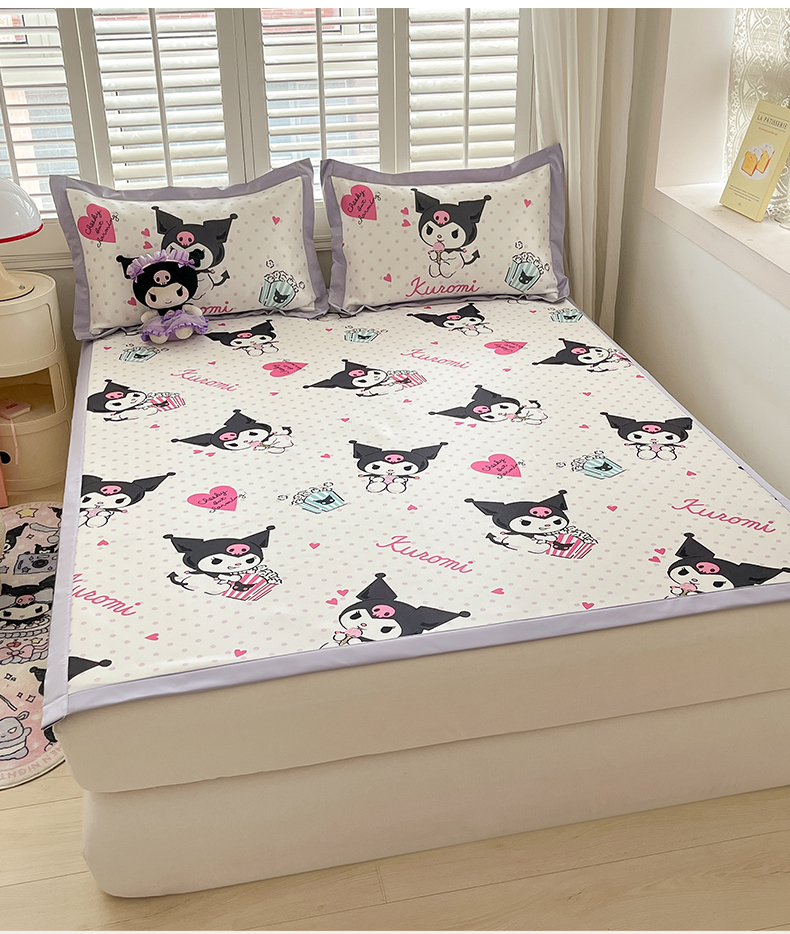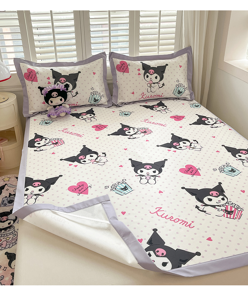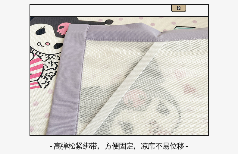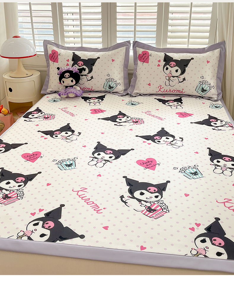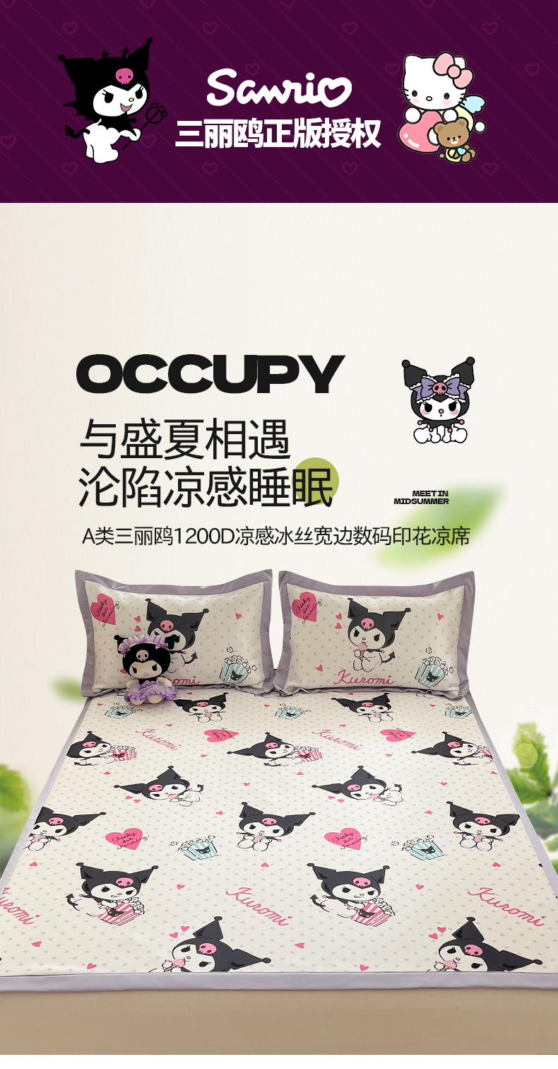 • 91家纺网 家纺一手货源 找家纺 金爱家 2024新款A类三丽鸥授权数码印花中分子1200D凉感冰丝宽边凉感软席 冰丝席-甜筒爱心库洛米