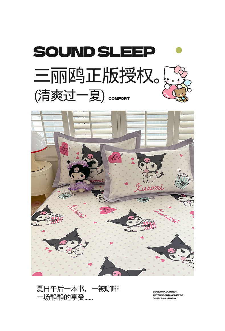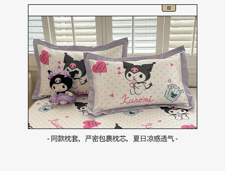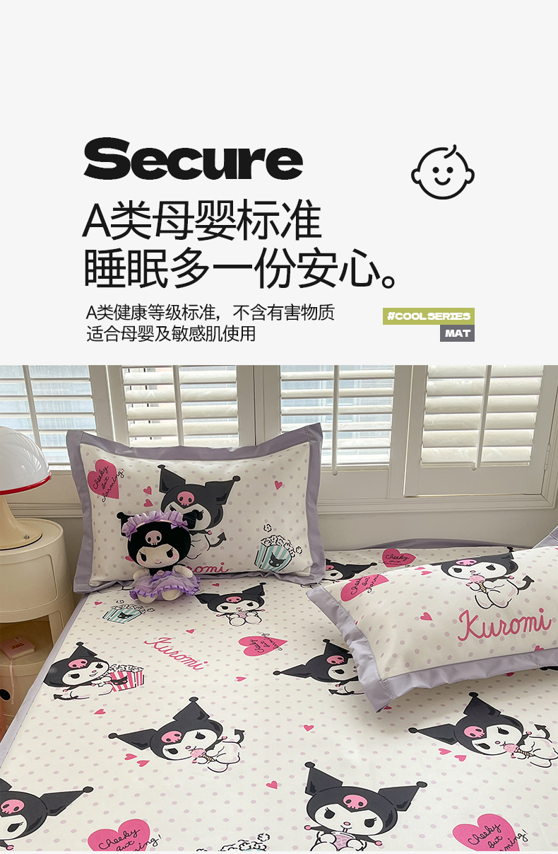 当前位置: 91家纺网 > 商品网购 > 床上用品 > 凉席 > 金爱家 2024新款A类三丽鸥授权数码印花中分子1200D凉感冰丝宽边凉感软席 冰丝席-甜筒爱心库洛米