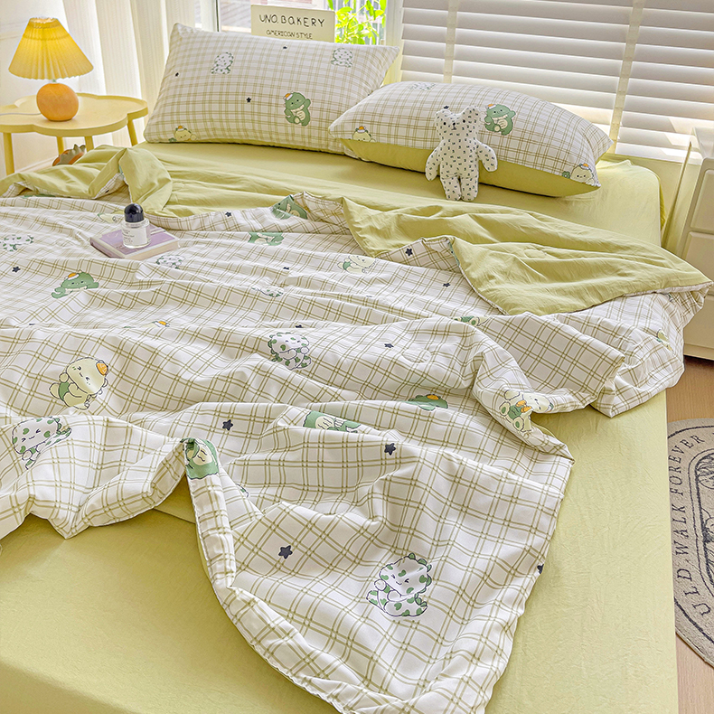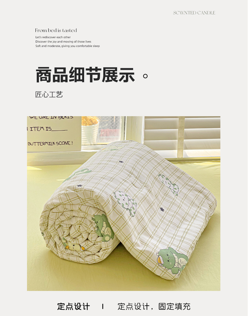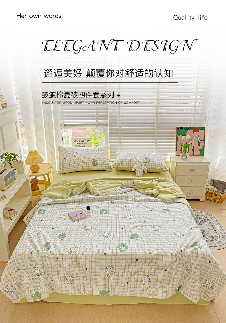 优选良品 2025直播爆款水洗皱皱夏被四件套空调被芯三件套春秋被子 恐龙宝贝