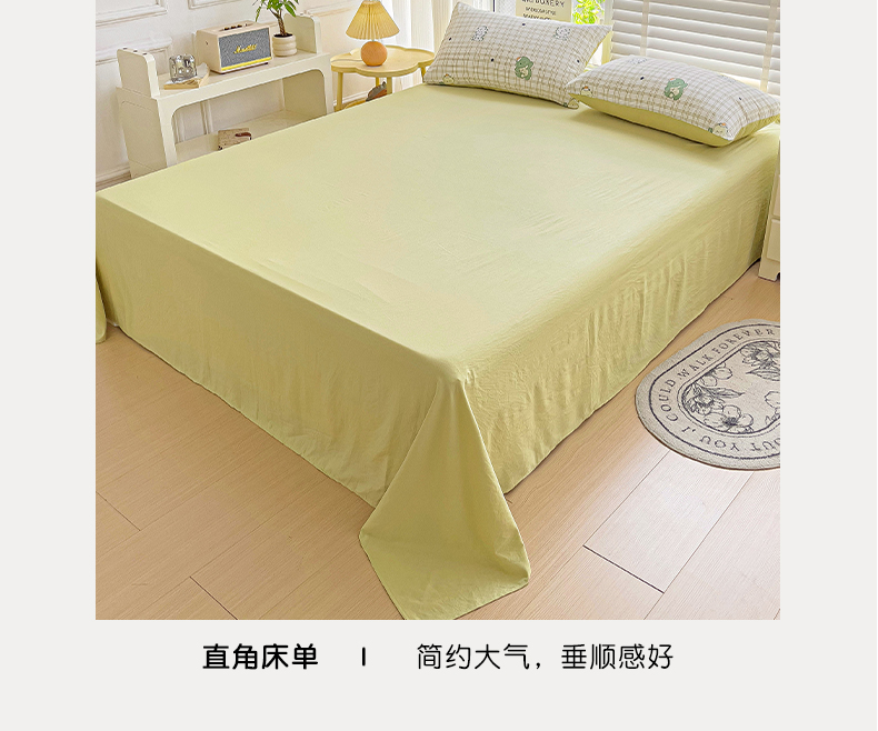 优选良品 2025新款韩版轻奢皱皱纱水洗棉拼色床单床笠四件套三件套-抹茶绿,抹茶绿