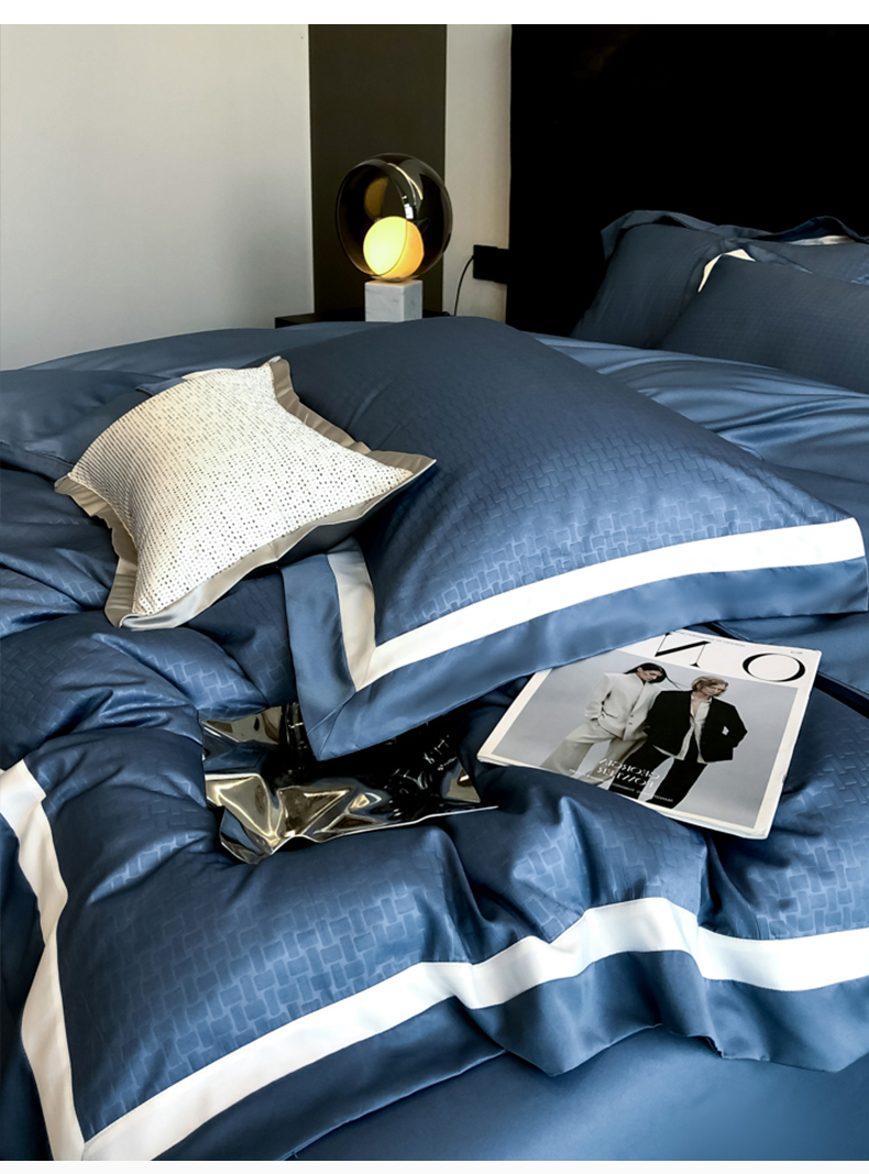 遇见家居生活馆 2024新款贡缎压花水洗真丝四件套 宝利格-宾利蓝
