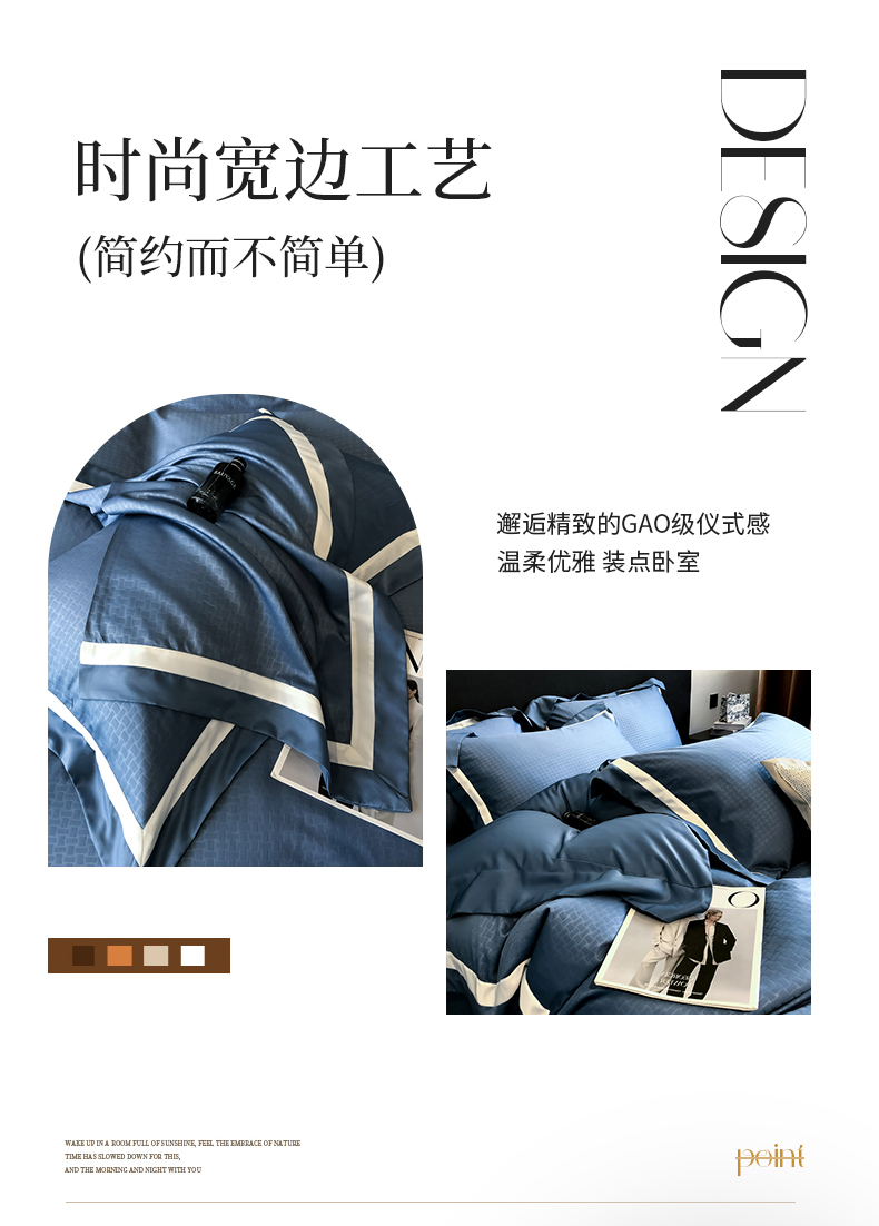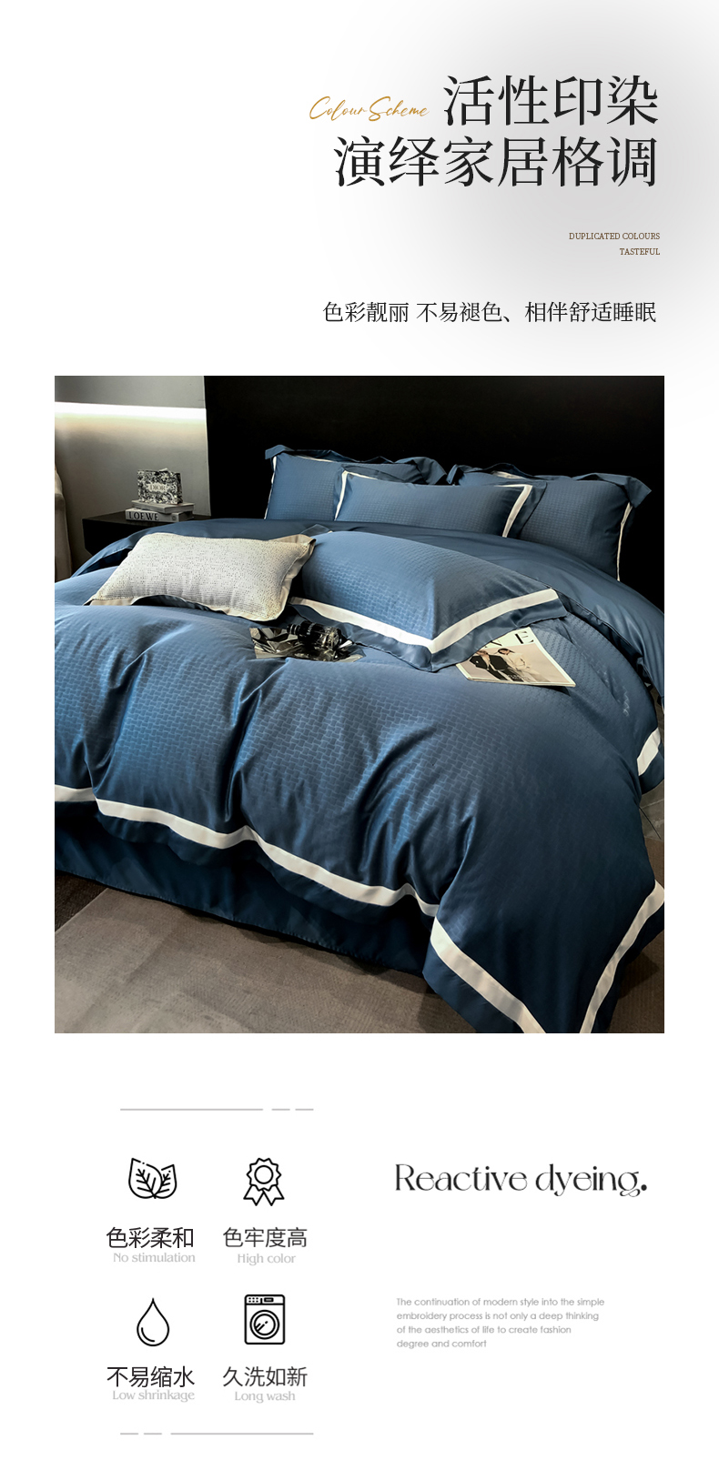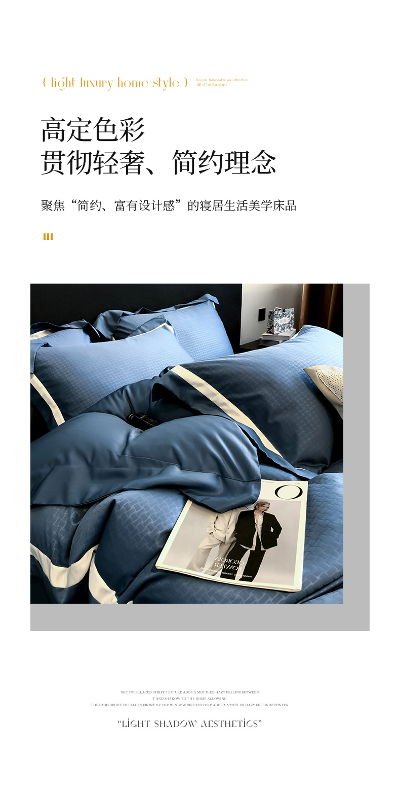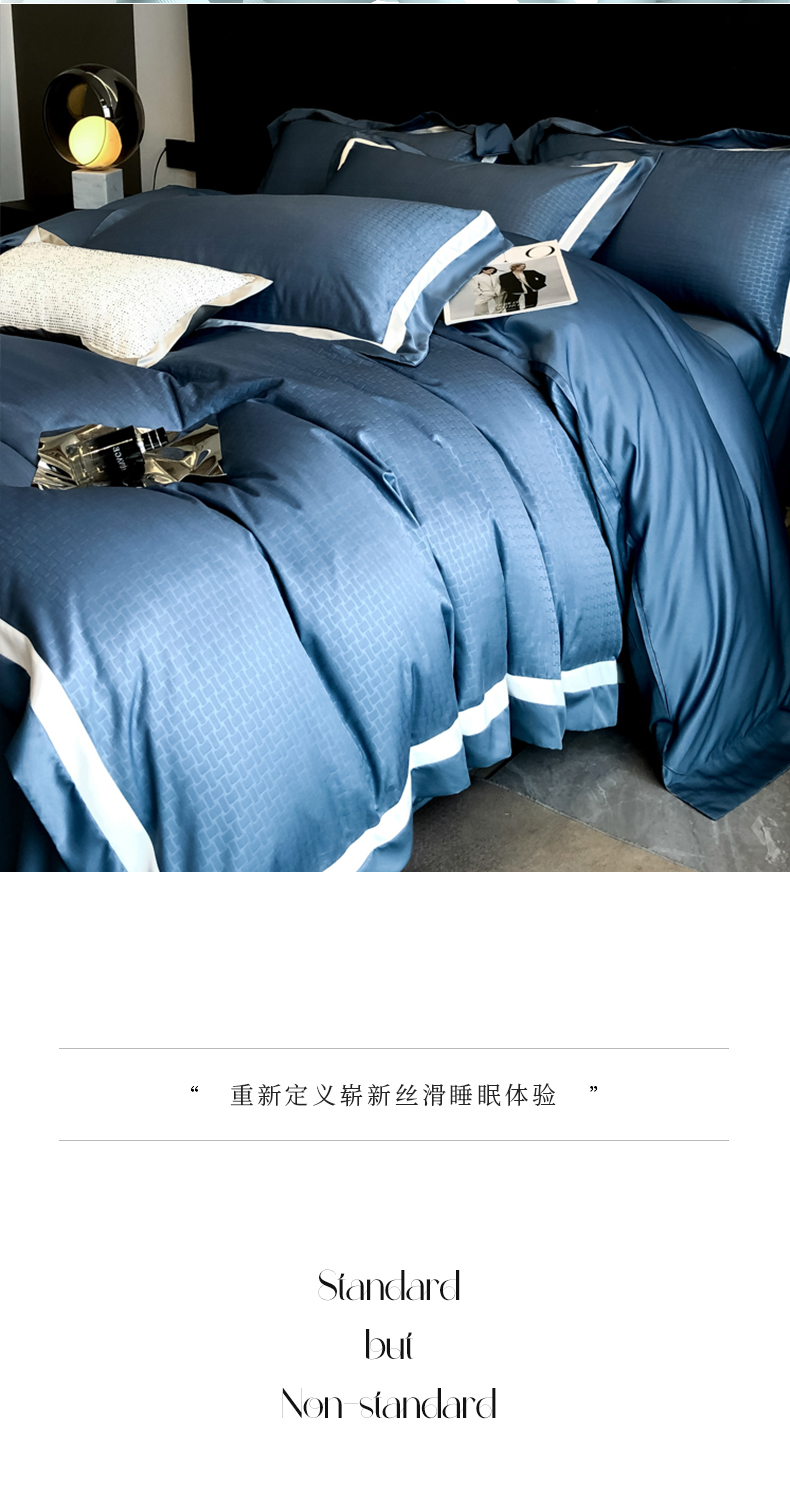 商品名称:遇见家居生活馆 2024新款贡缎压花水洗真丝四件套 宝利格-宾利蓝