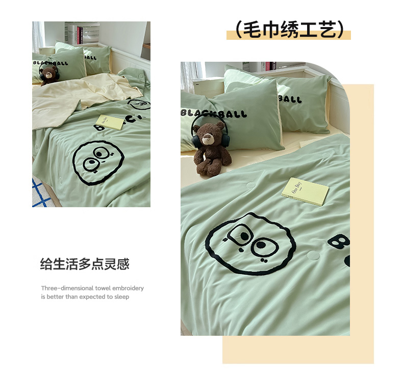 当前位置: 91家纺网 > 商品网购 > 床品套件 > 四件套 > 夏被四件套 > 眠帛家居 2024新款水洗棉毛巾绣夏被四件套精灵系列A类风格二 精灵果绿-奶黄