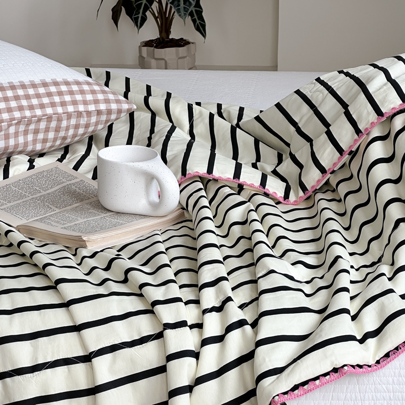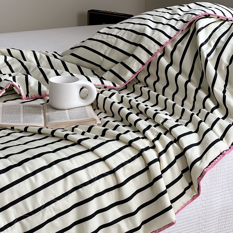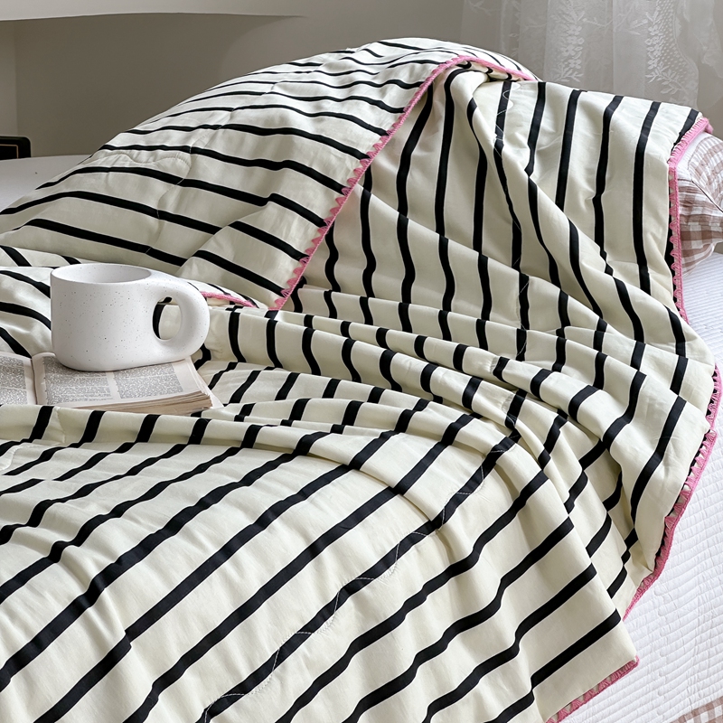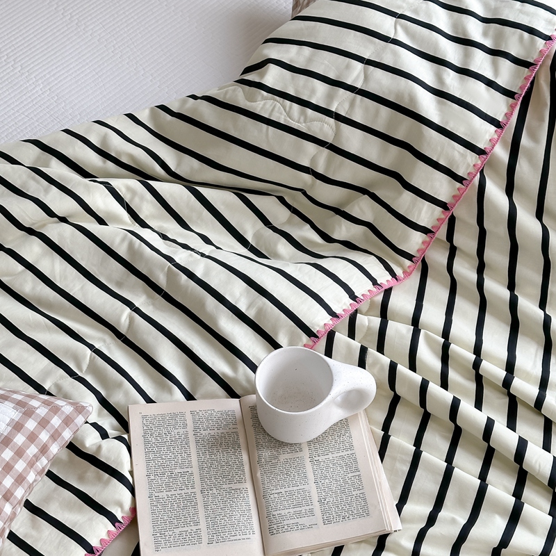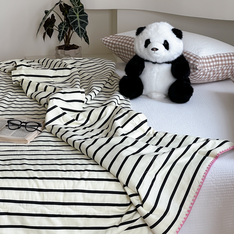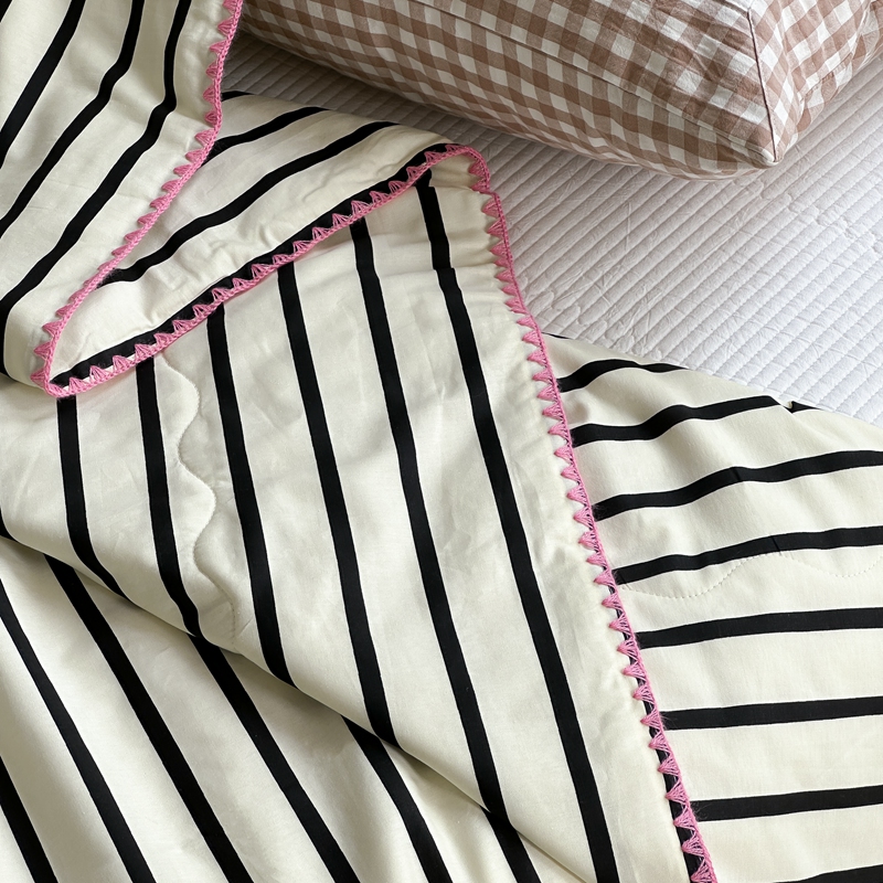 洋铭区(原狠狠爱) 2024新款贝壳边全棉印花夏被 黑小条