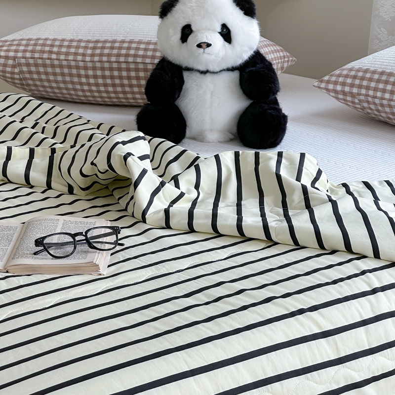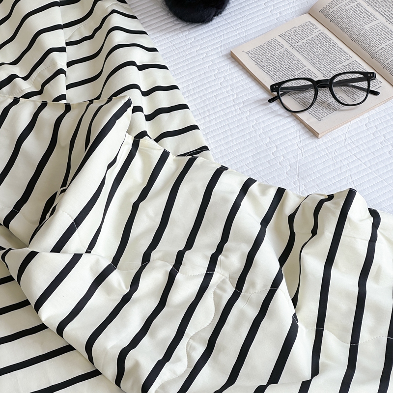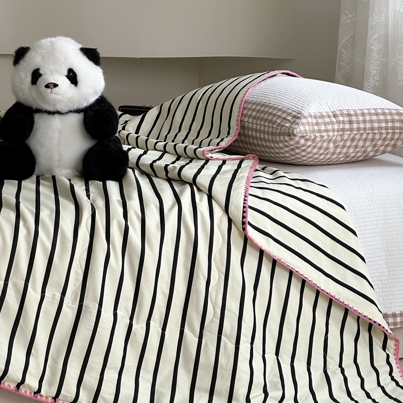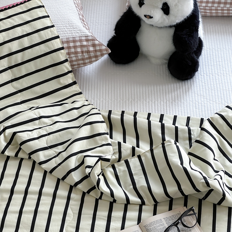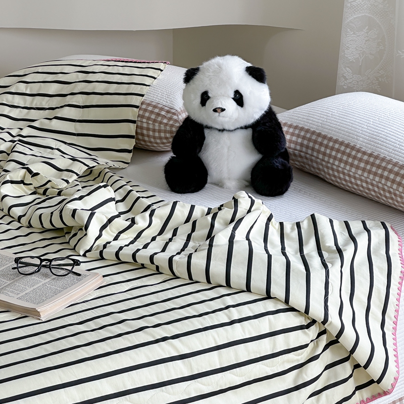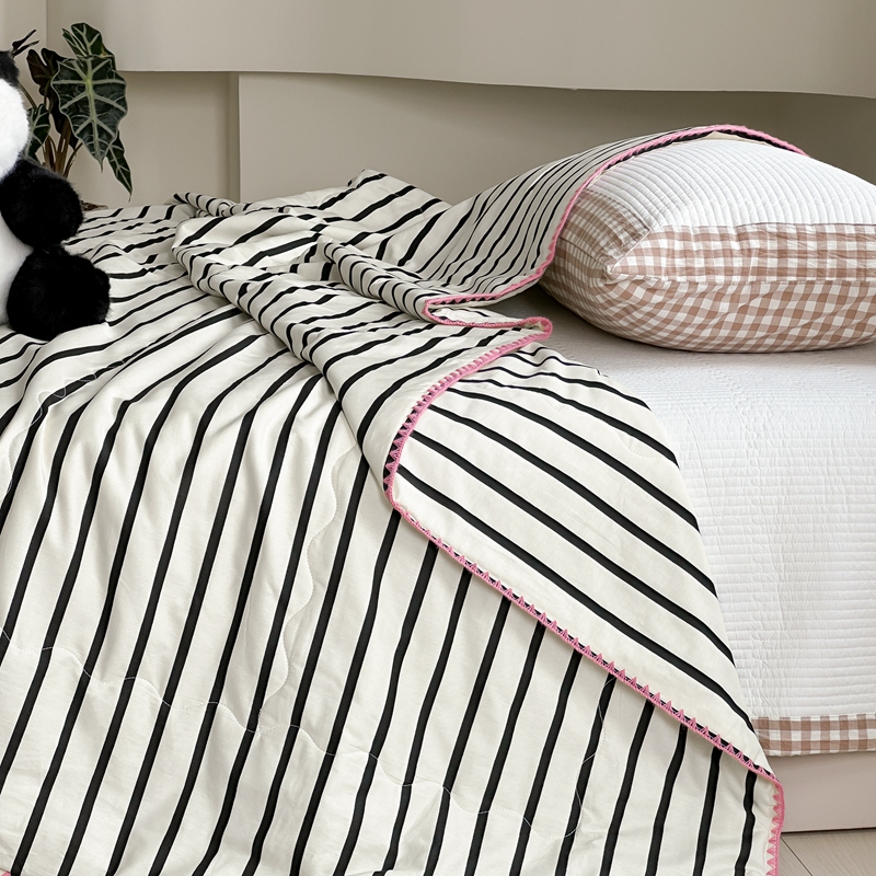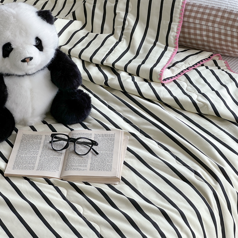 洋铭区(原狠狠爱) 2024新款贝壳边全棉印花夏被 黑小条