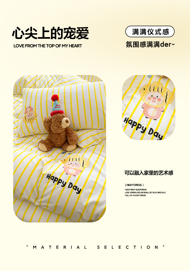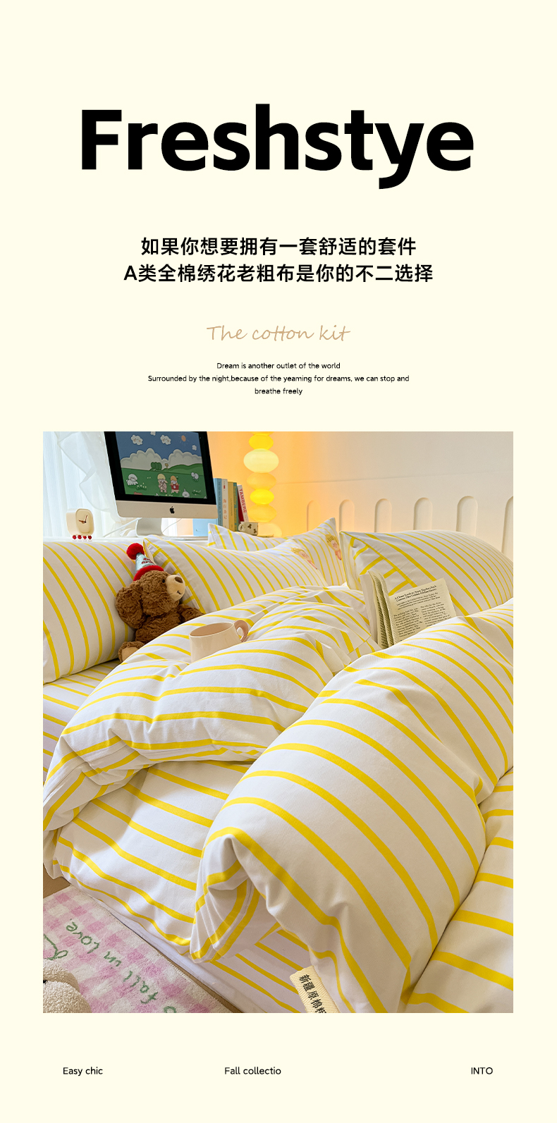 当前位置: 91家纺网 > 商品网购 > 床品套件 > 四件套 > 全棉普通四件套 > 雅居纺 2024新款全棉绣花老粗布单被套四件套 小海狸黄