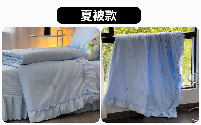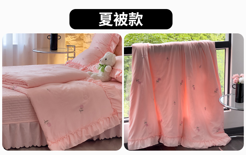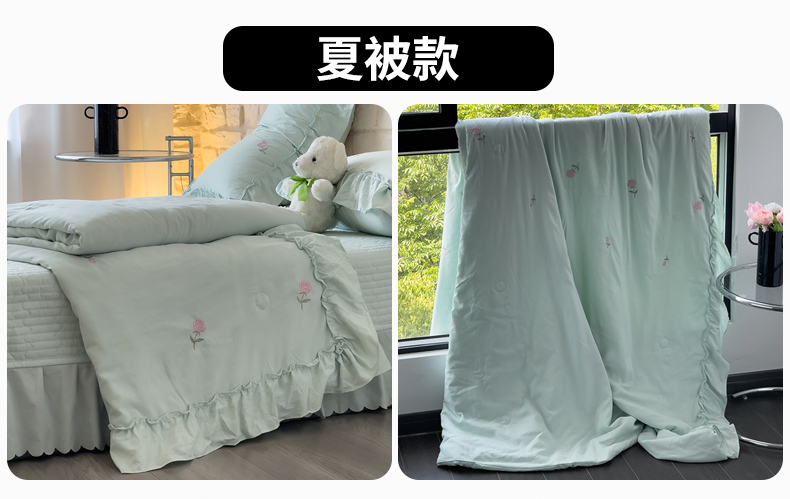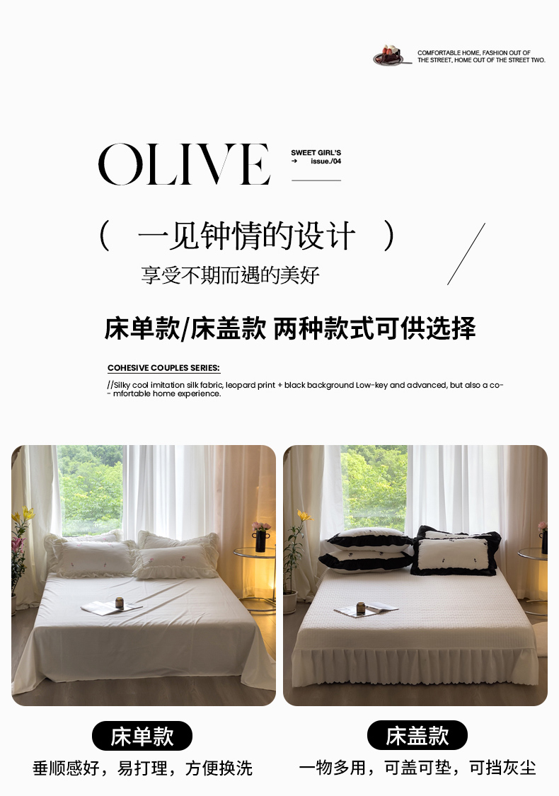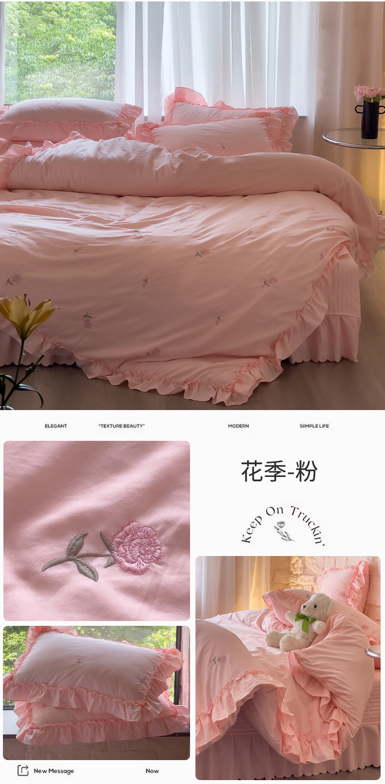 小主驾到 2024新款水洗棉刺绣法式花边被套床单四件套夏被床盖四件套-花季 花季 黑白