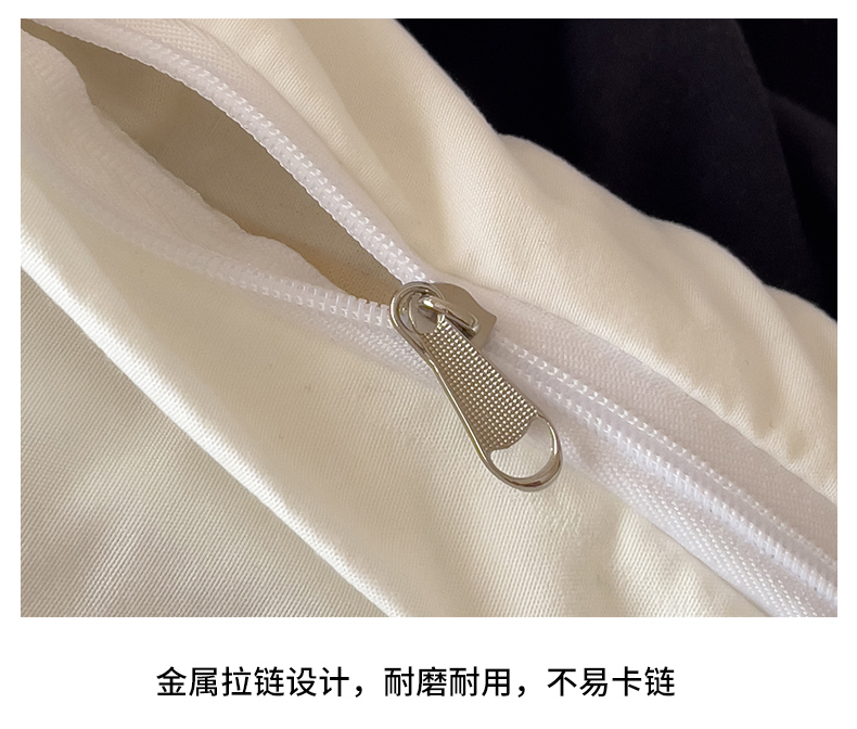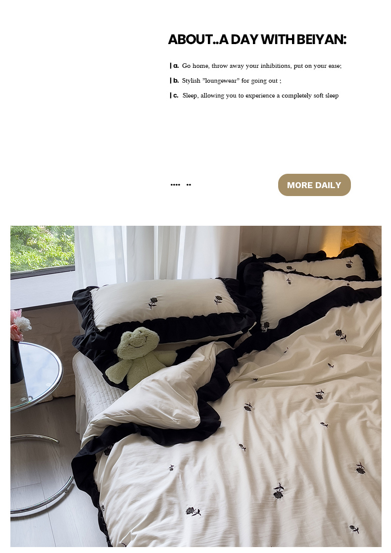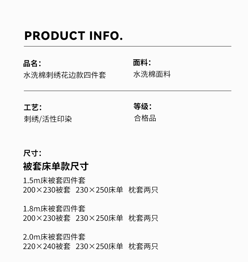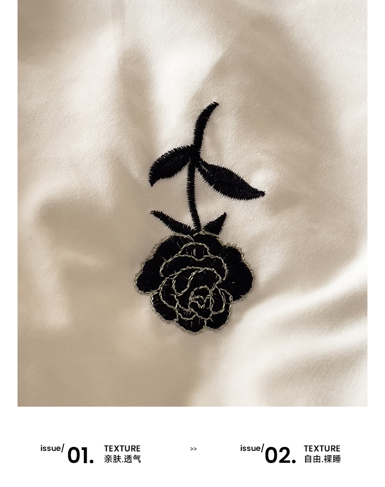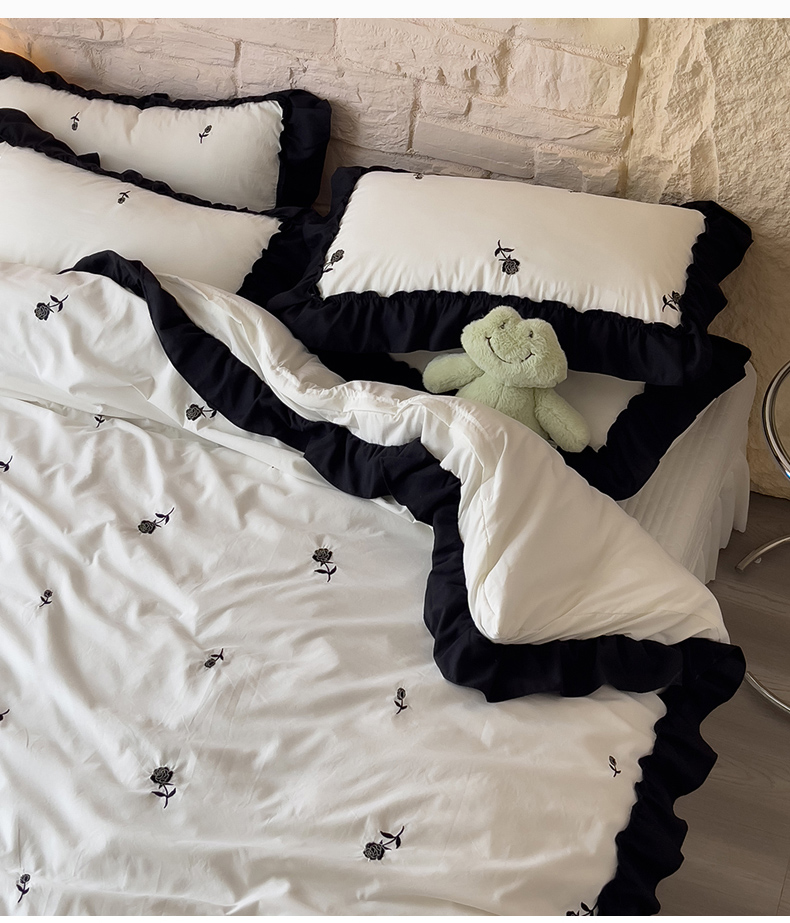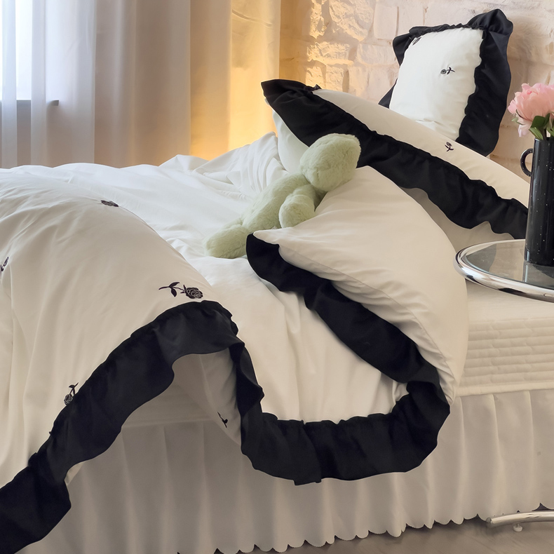 商品名称:小主驾到 2024新款水洗棉刺绣法式花边被套床单四件套夏被床盖四件套-花季 花季 黑白