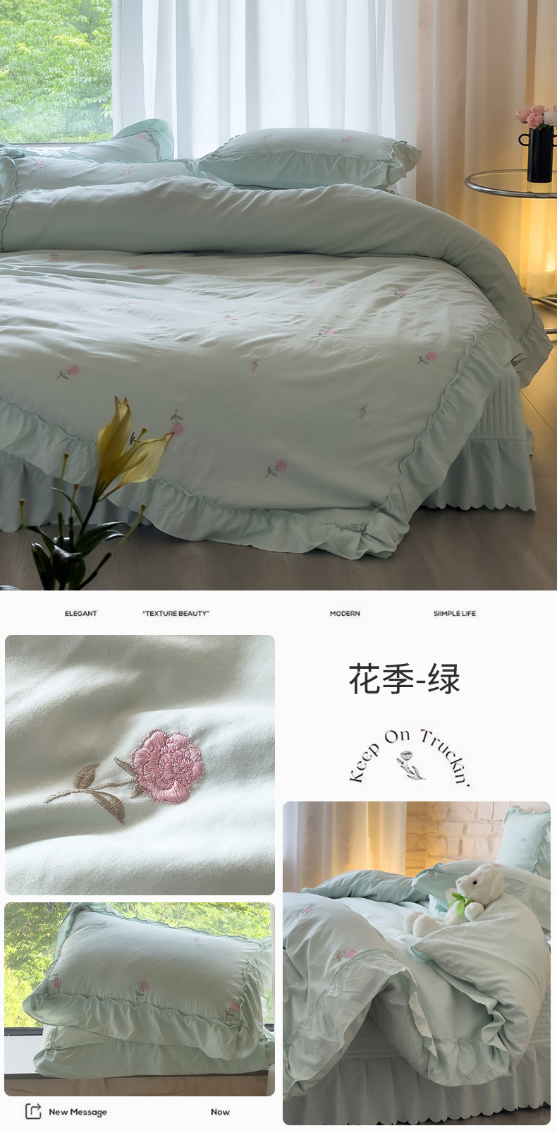 (总)2023新款韩版公主风水洗棉拼色灰色花园系列四件套,灰色花园 白色,灰色花园 纯灰,灰色花园 豆绿,灰色花园 裸粉,灰色花园 浅蓝,灰色花园 紫色