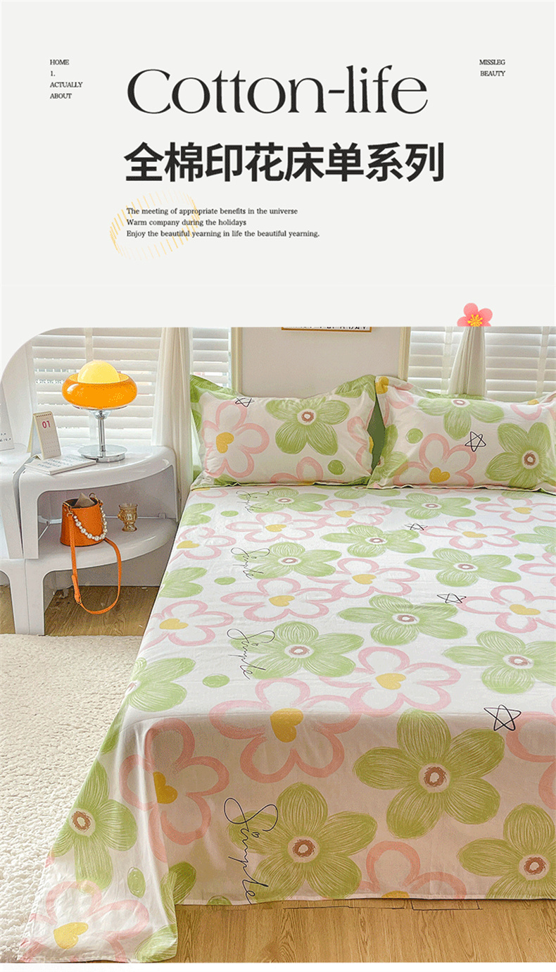 • 91家纺网 家纺一手货源 找家纺 恩泽 2024新款ins风全棉单品床单花语嫣然