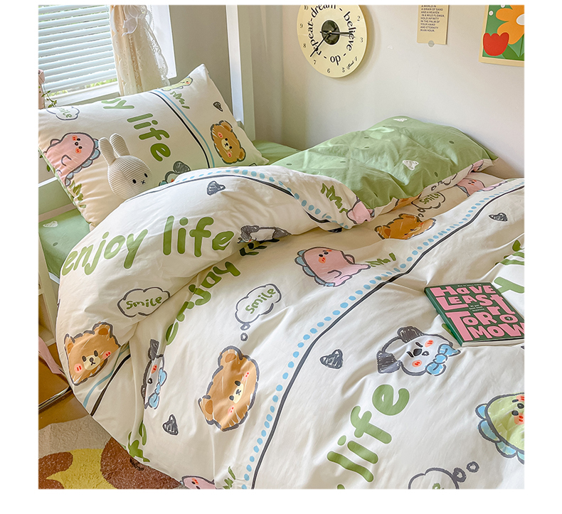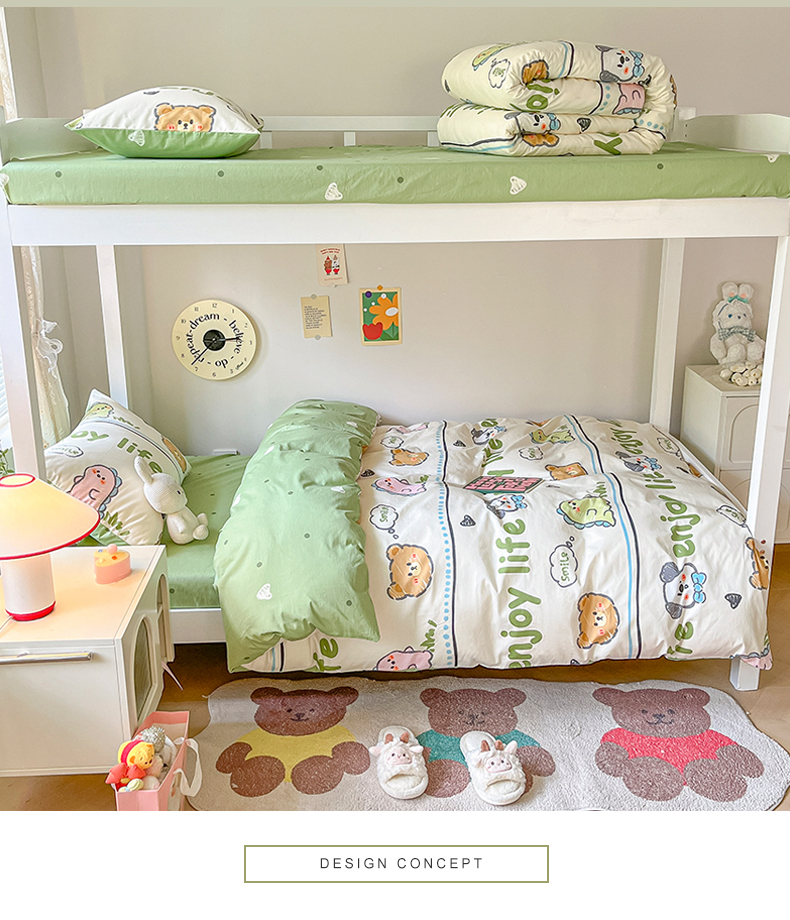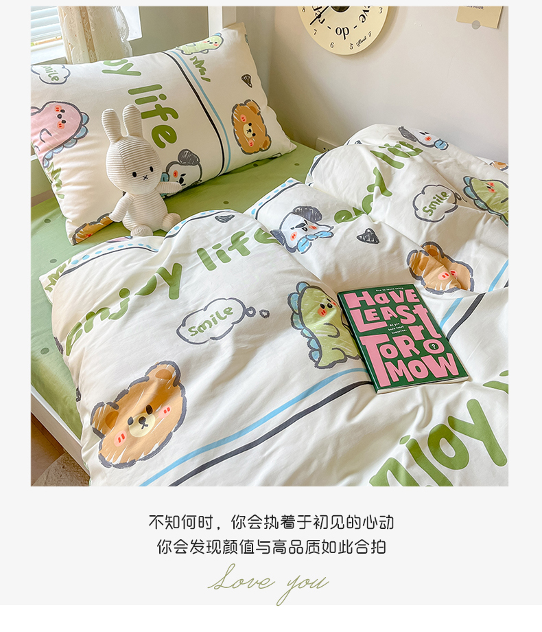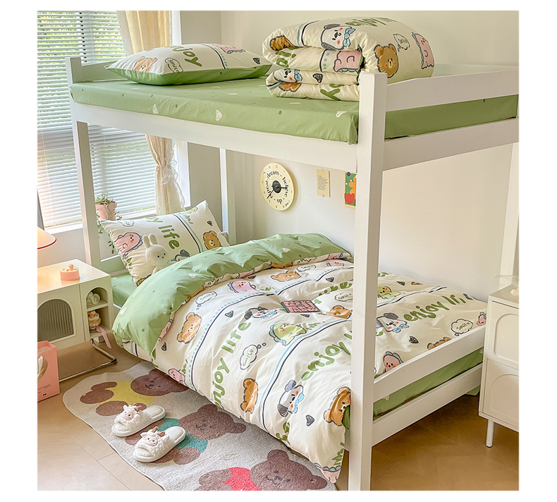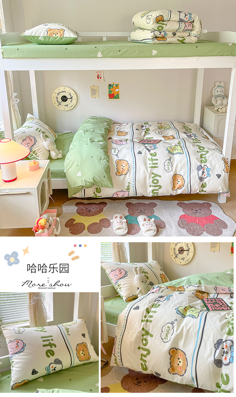 当前位置: 91家纺网 > 商品网购 > 床品套件 > 四件套 > 全棉普通四件套 > 麦伦家居 2024新款40支13372全棉斜纹学生上下铺床品系列 哈哈乐园