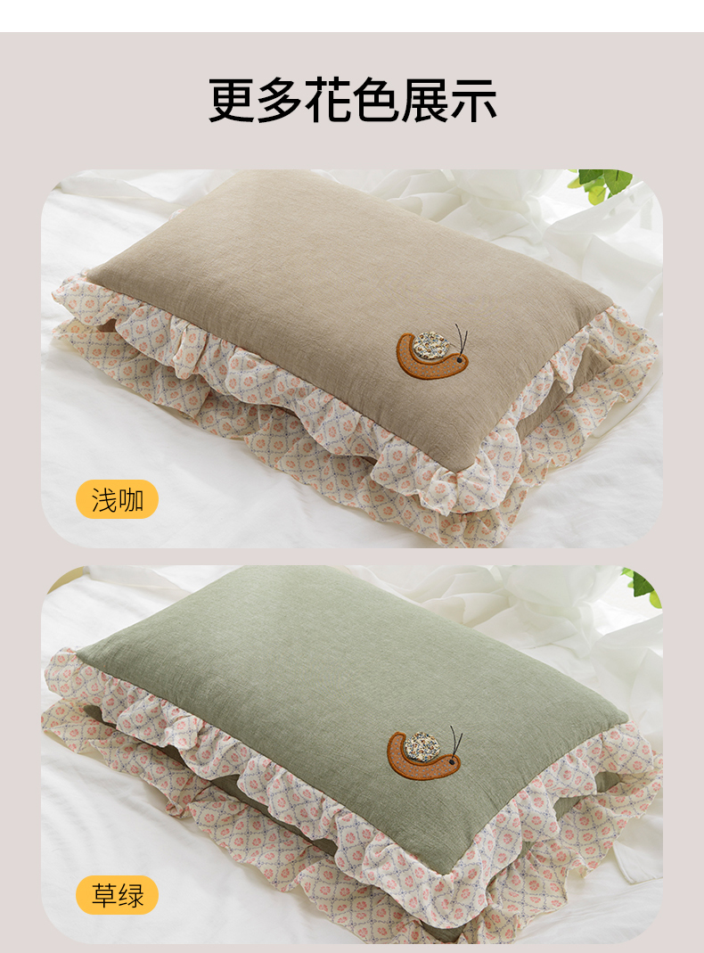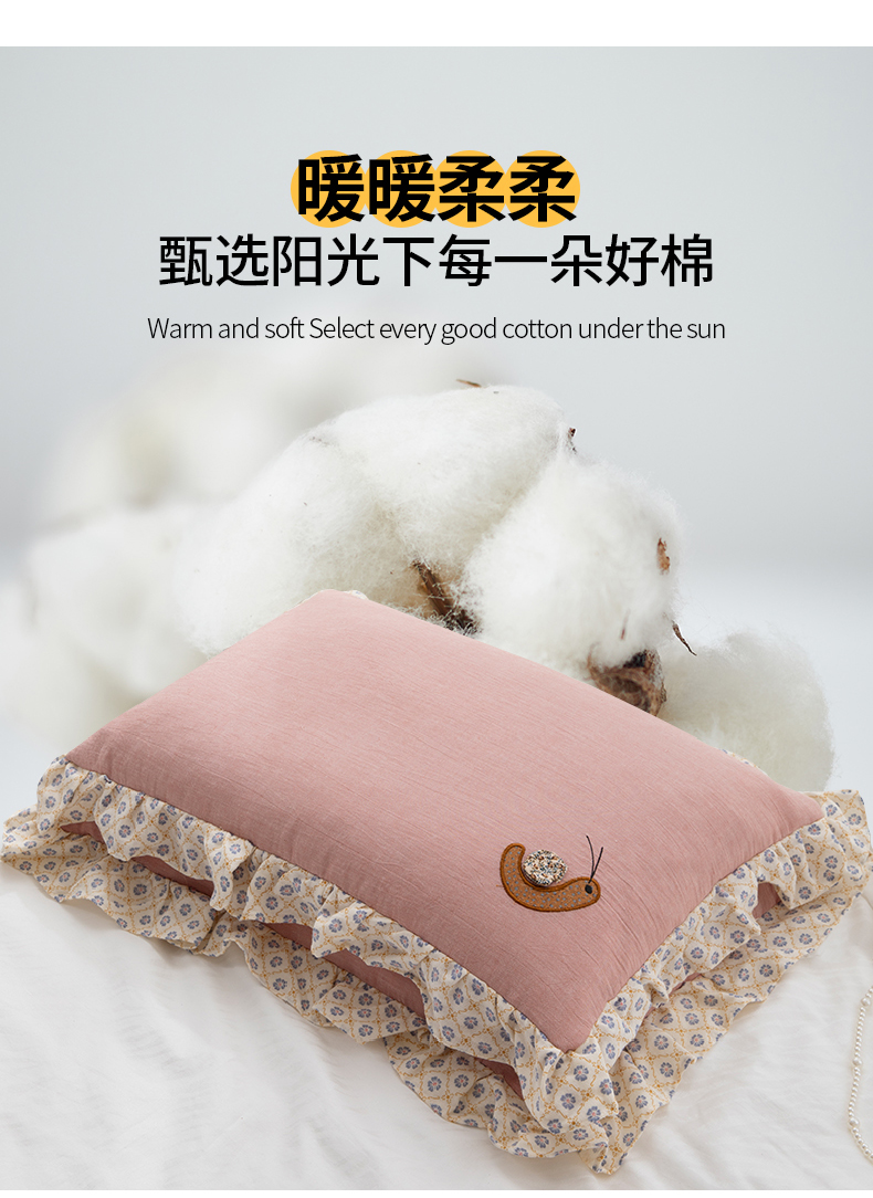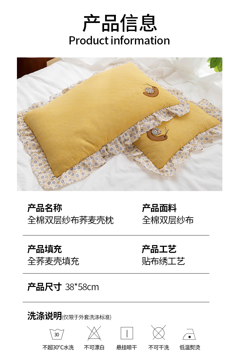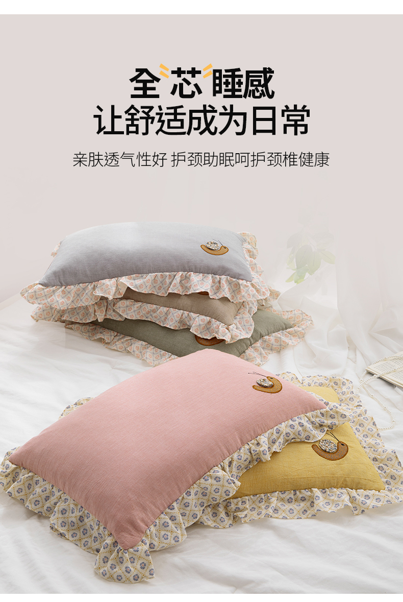 商品名称:(总)仁宇枕业 2024年新款枕芯 全棉双层纱贴布绣毛毛虫花边系列儿童学生婴幼儿园青少年成人小清新全荞麦枕头