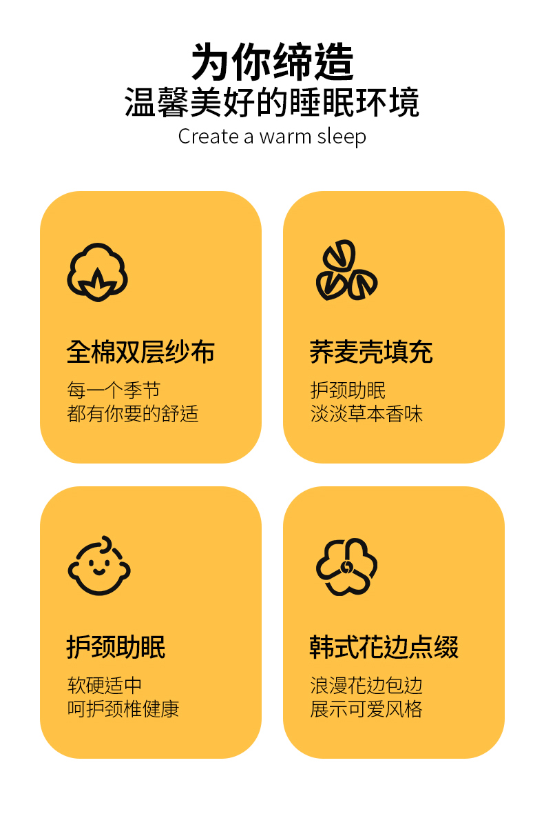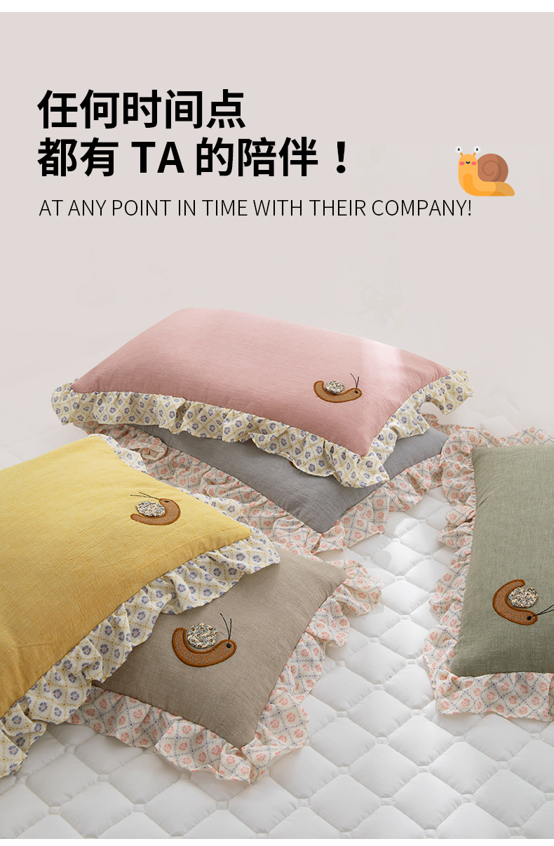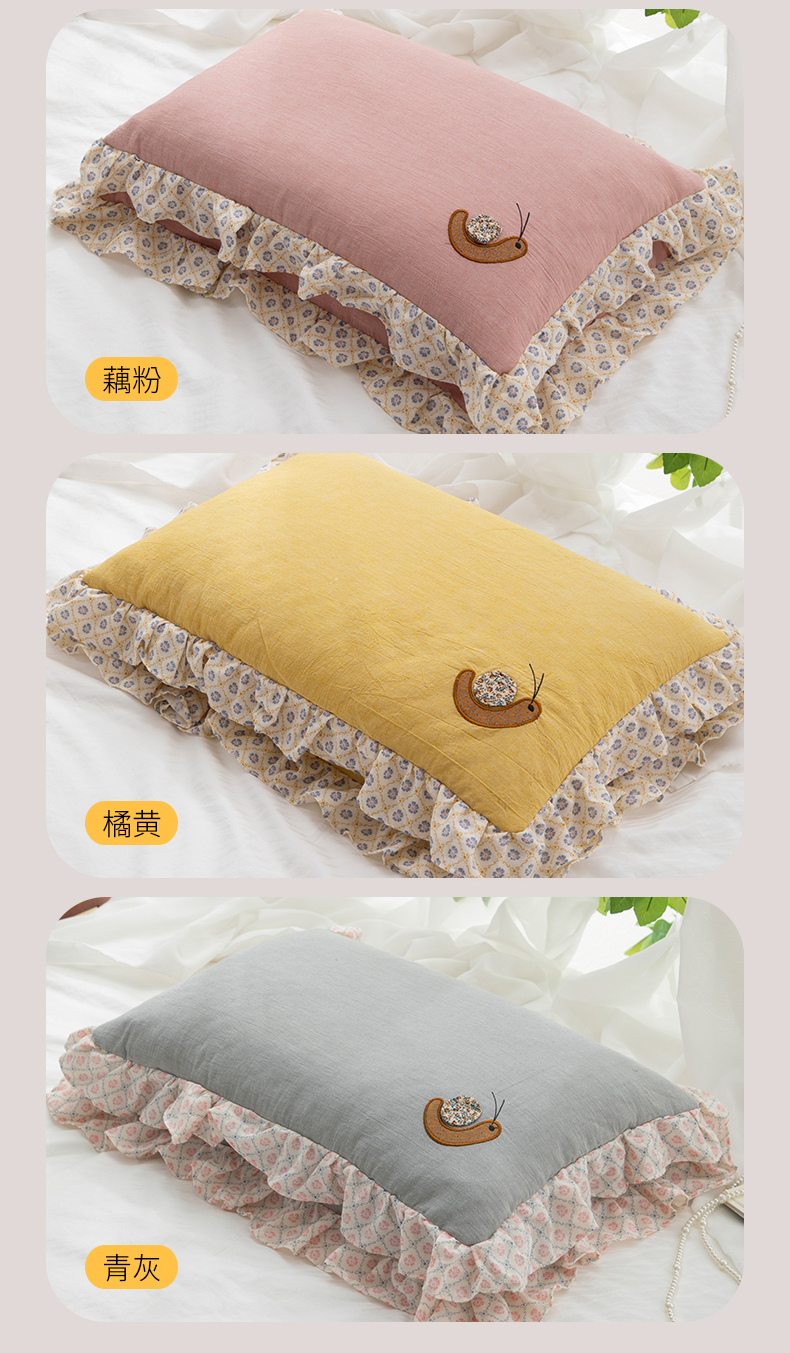 商品名称:(总)仁宇枕业 2024年新款枕芯 全棉双层纱贴布绣毛毛虫花边系列儿童学生婴幼儿园青少年成人小清新全荞麦枕头