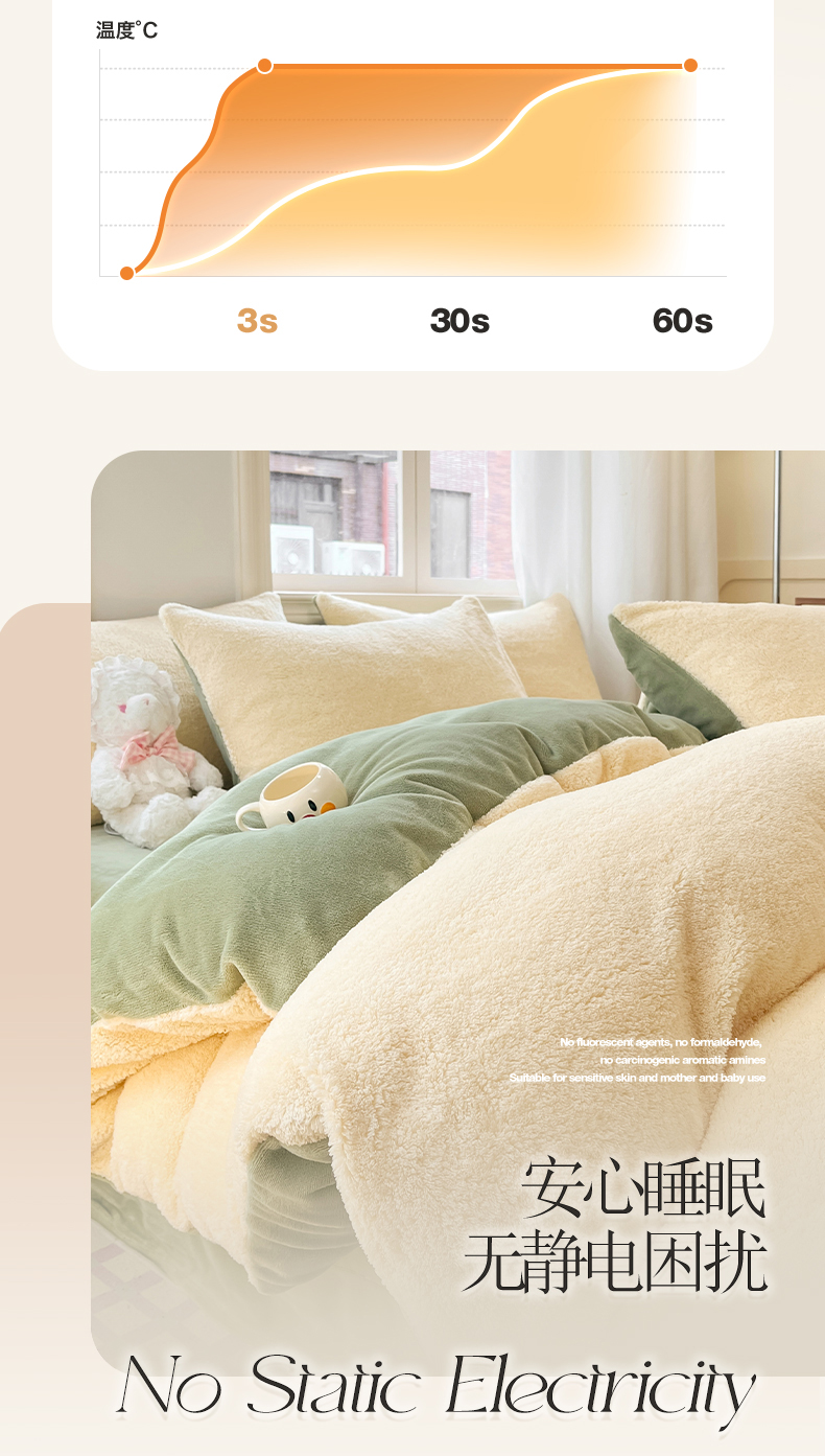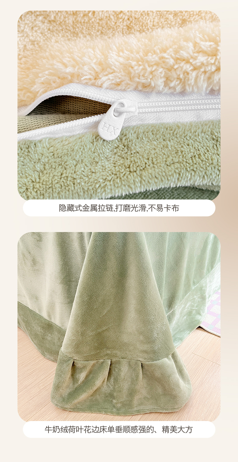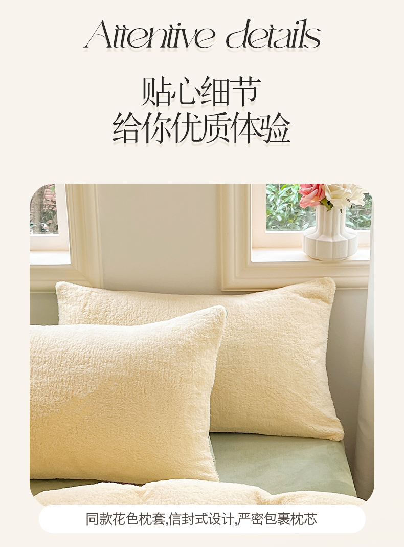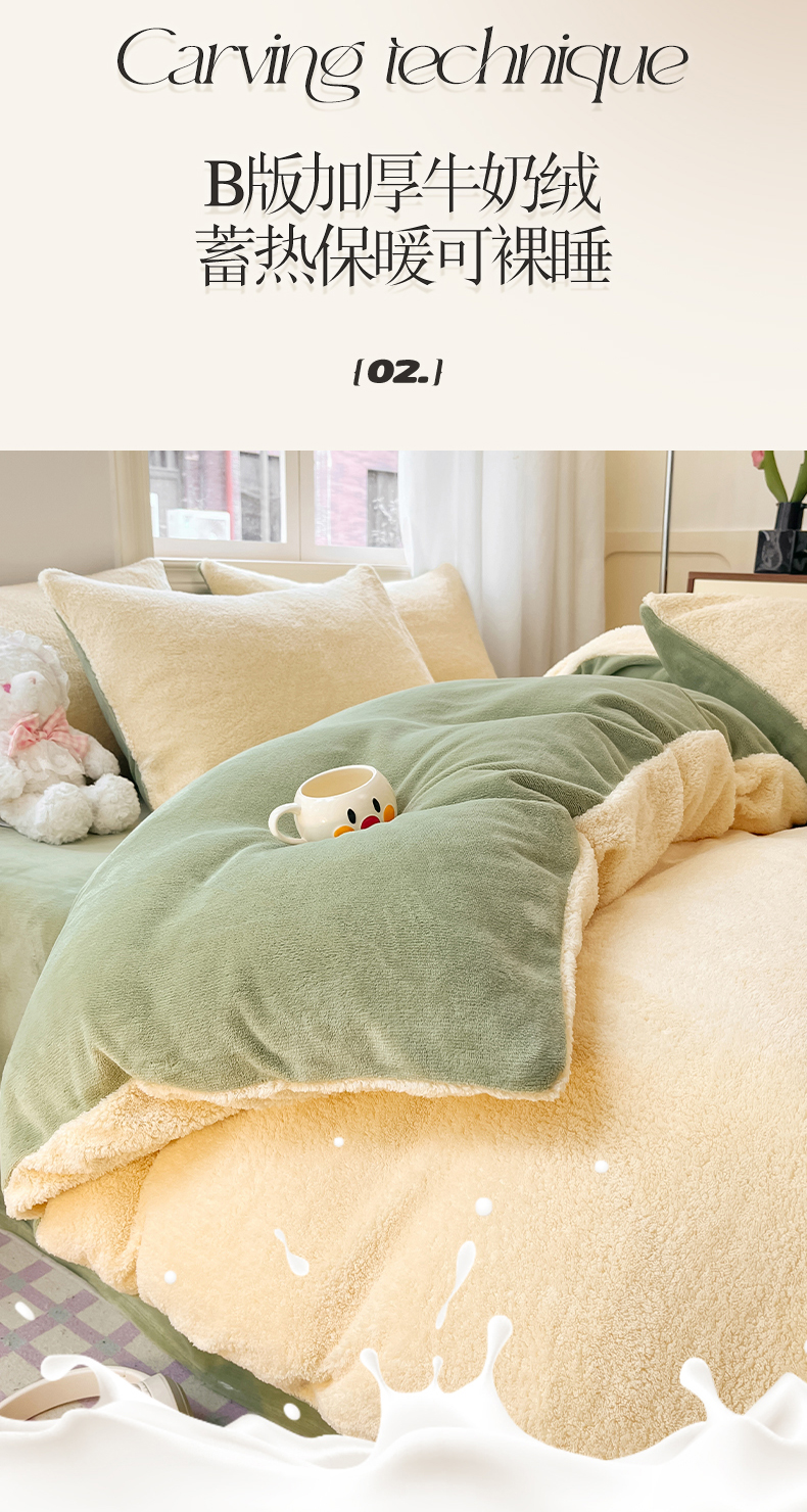 商品名称:绘萱家居 2024新款高克重泰迪绒纯色牛奶绒四件套双拼法莱绒珊瑚绒 泰迪绒-奶黄+灰绿