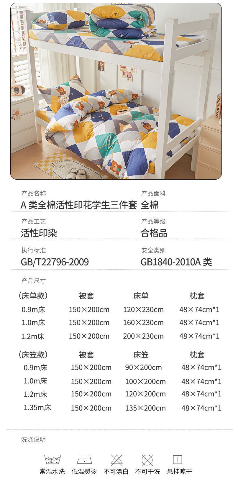当前位置: 91家纺网 > 商品网购 > 床品套件 > 三件套 > 名优家纺 2024新款全棉三件套学生宿舍上下铺套件 爱尔威