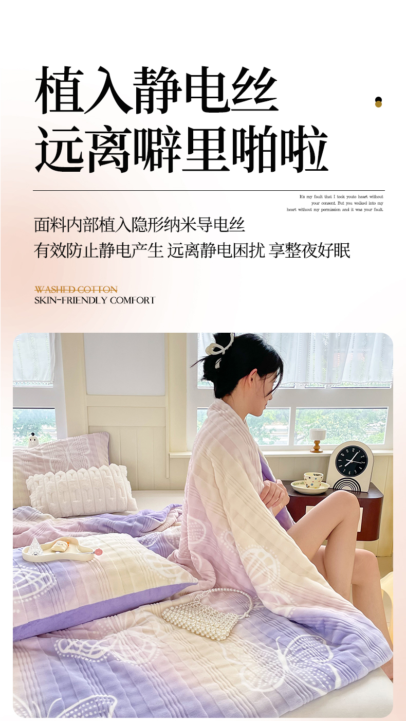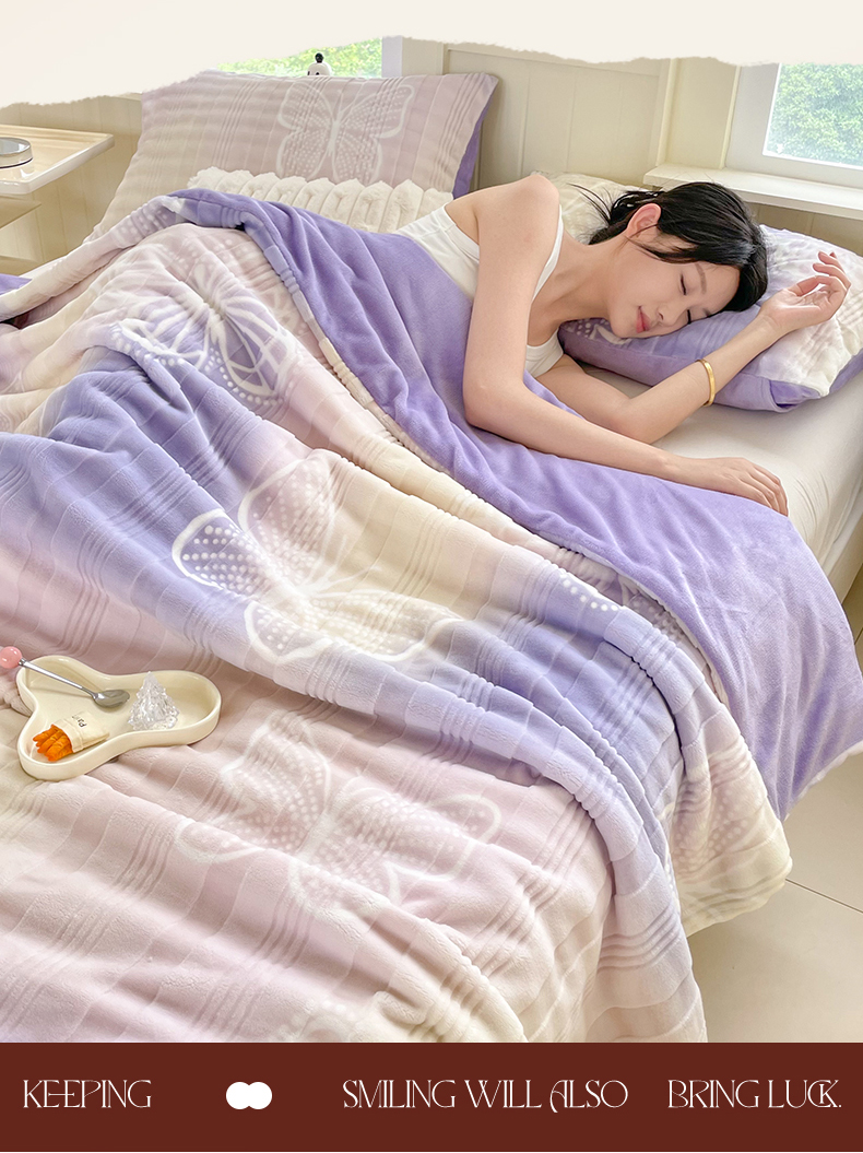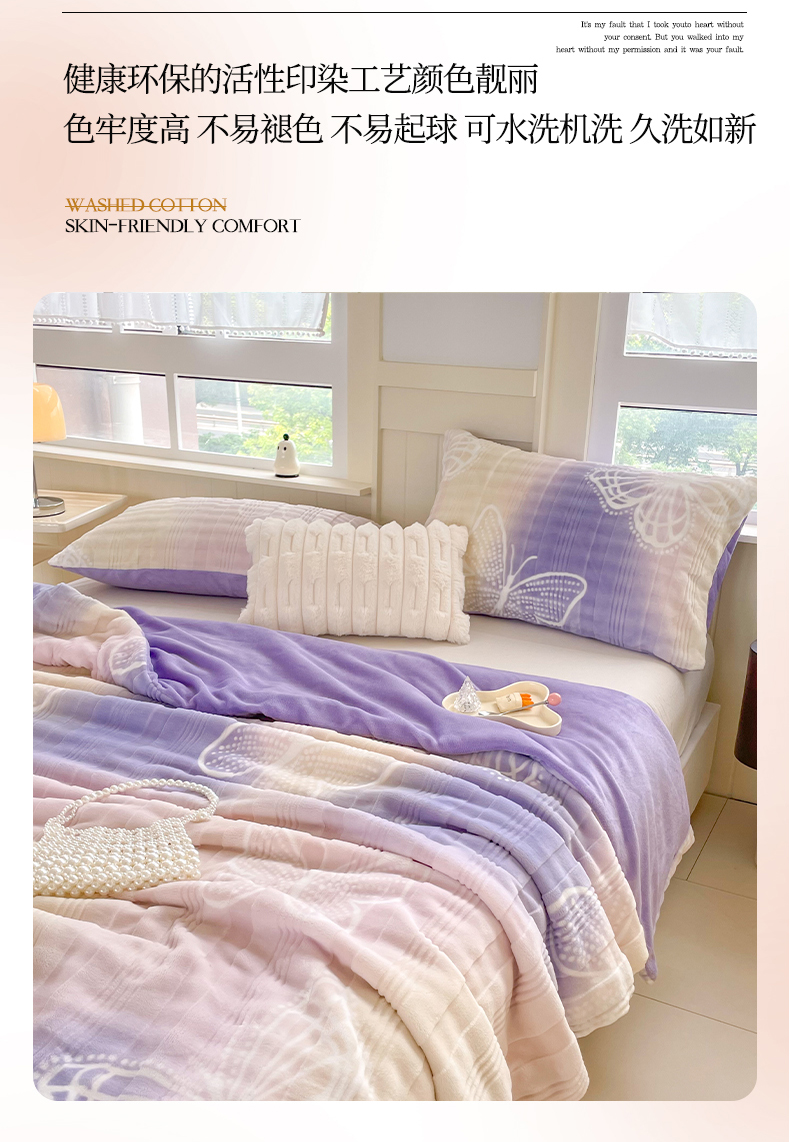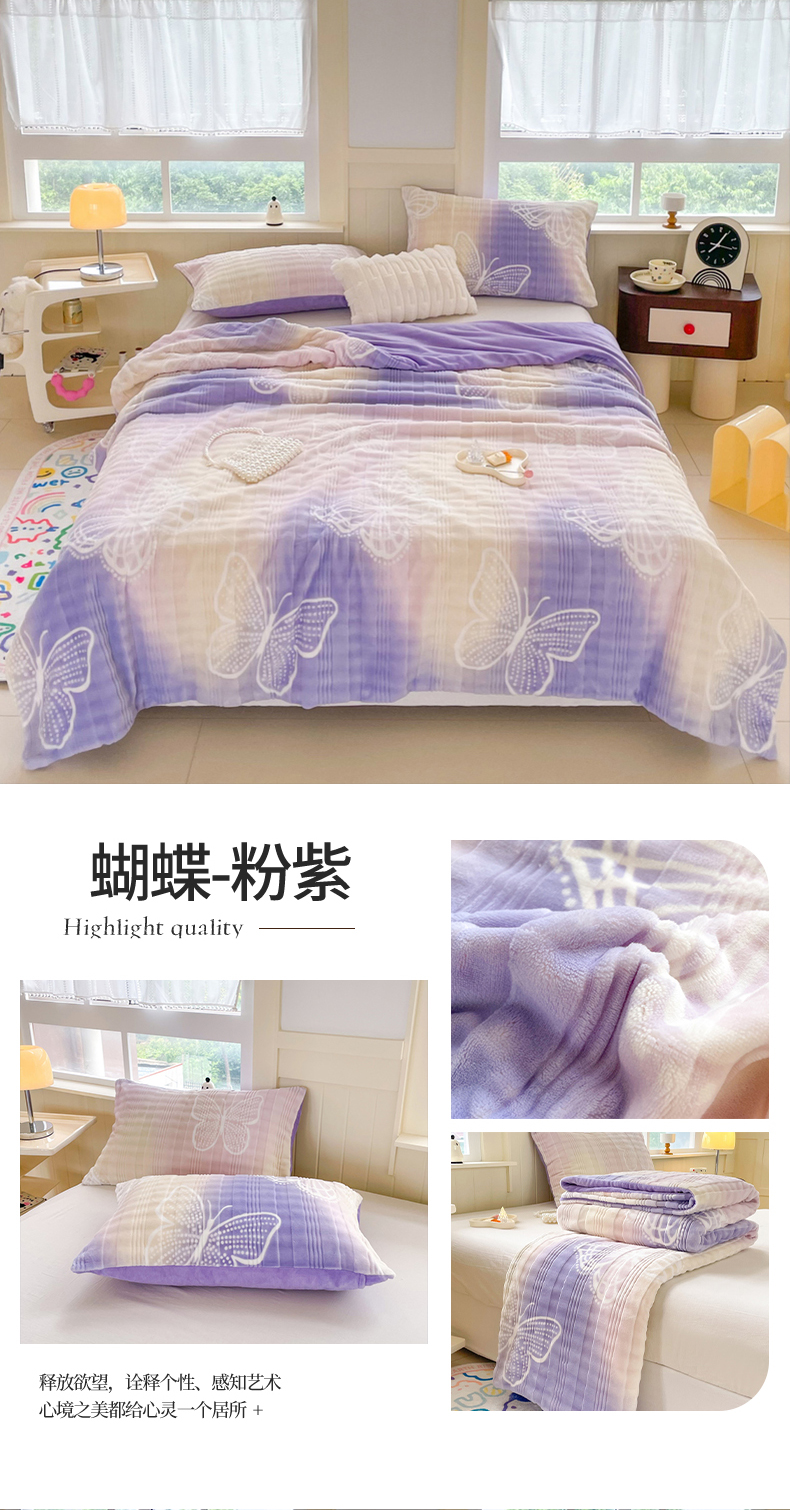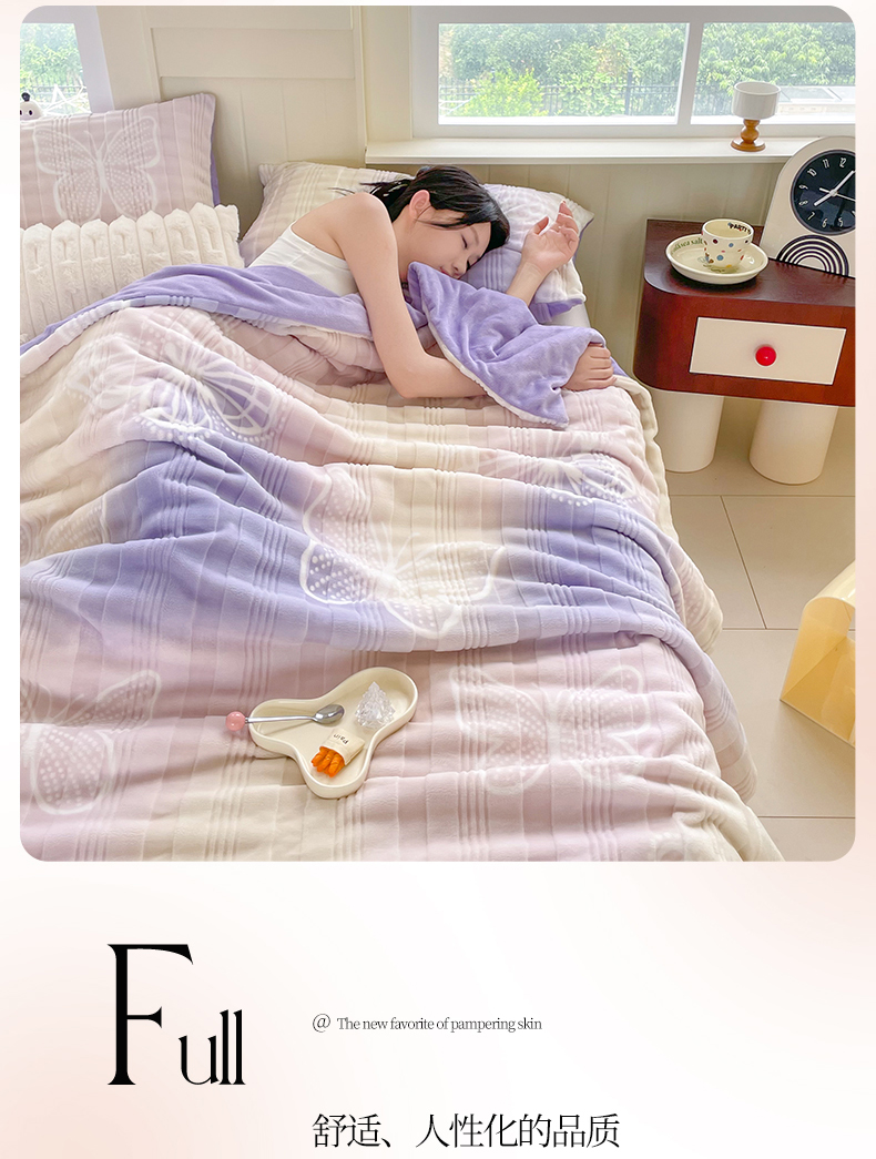 言熙居家纺 2024新款AB版多功能盖毯被套 蝴蝶-粉紫