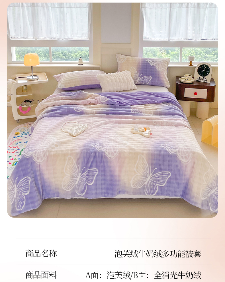 (总)言熙居家纺 直播爆款2024,全消光牛奶绒AB版多功能盖毯被套毛毯,蝴蝶-粉蓝,蝴蝶-粉紫,泡芙-粉白,泡芙-粉蓝,泡芙-粉绿,泡芙-蓝粉