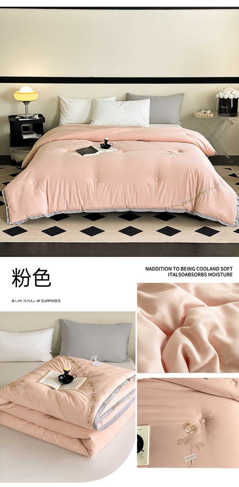 亿莱鑫 2025新款绣花轻奢玫瑰恋人秋冬被 蜜桃粉