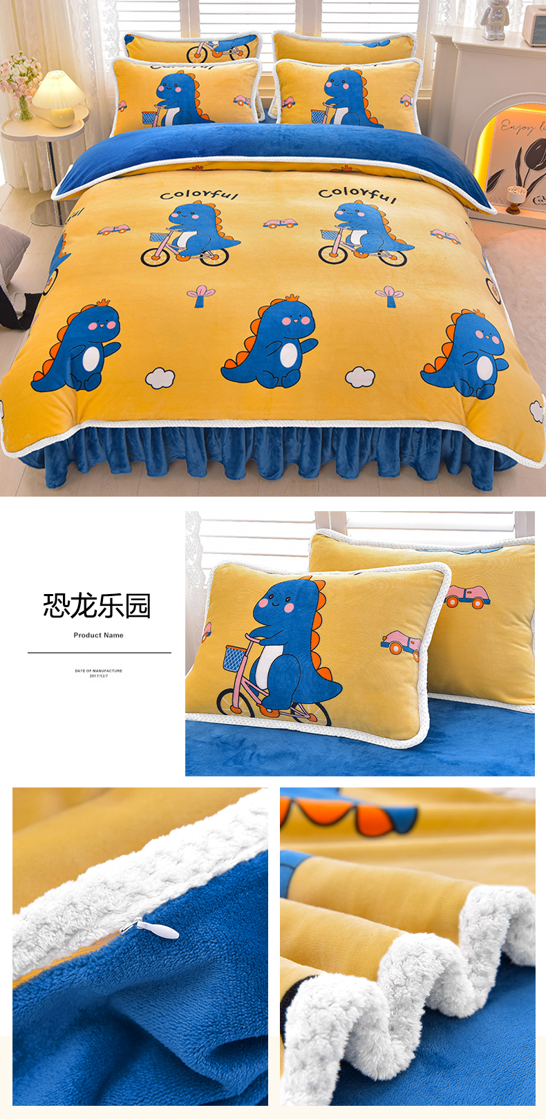 商品名称:羽梦 2024新款直播印花小清新牛奶绒四件套 恐龙乐园