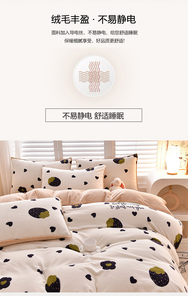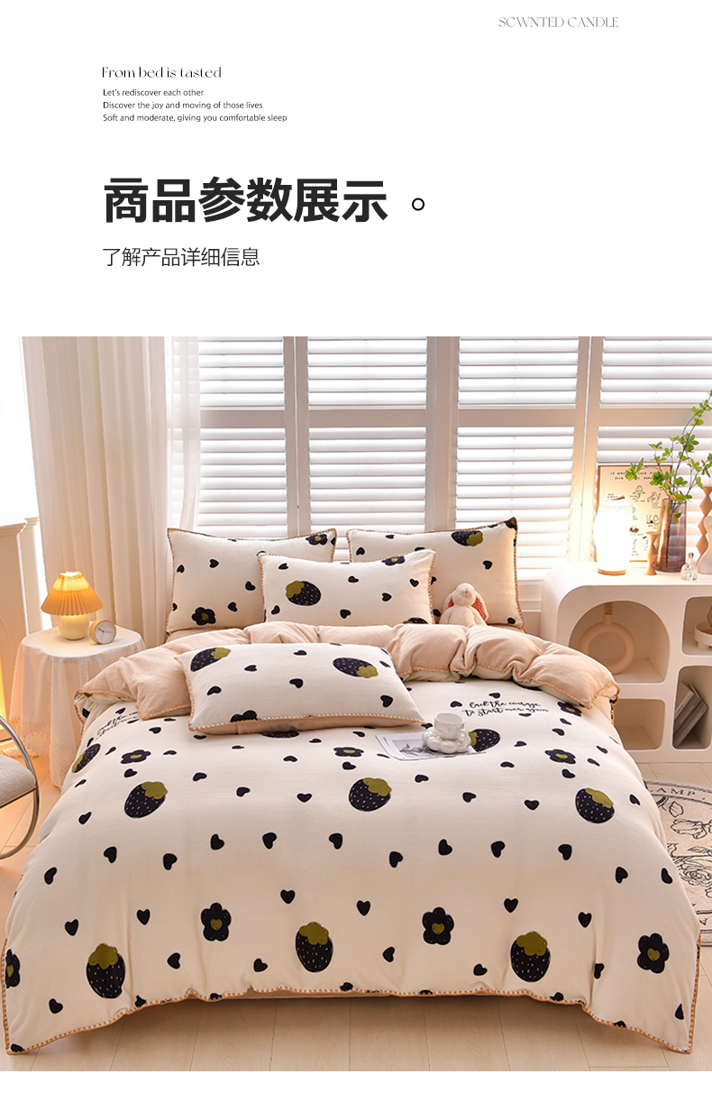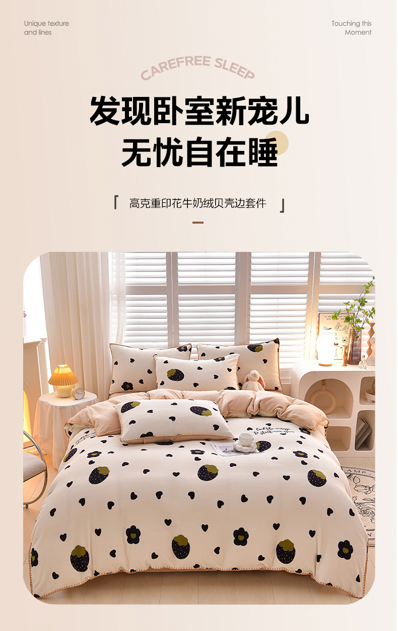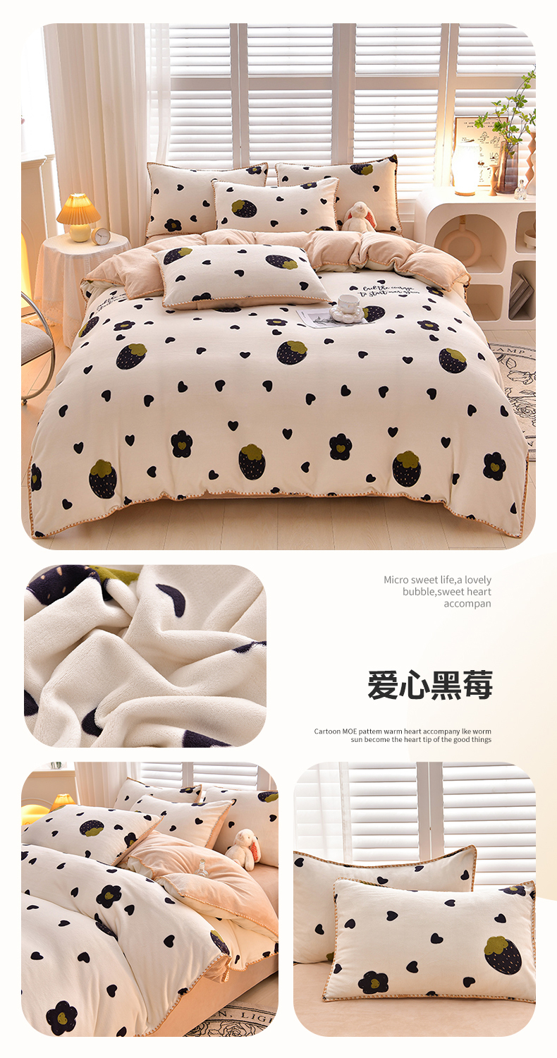 当前位置: 91家纺网 > 商品网购 > 床品套件 > 四件套 > 牛奶绒四件套 > 菡宝 2024新款高克重印花贝壳边牛奶绒四件套 爱心黑莓